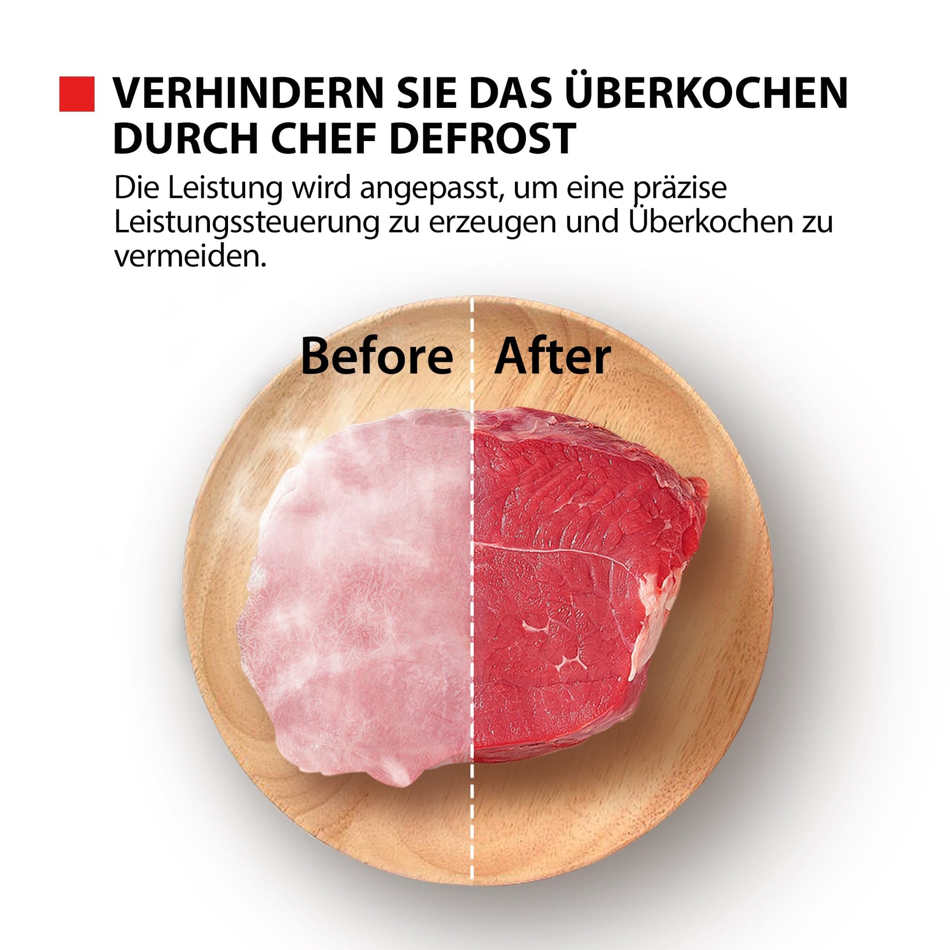 - Chef-Defrost-Funktion: Ein spezielles Auftauprogramm für gleichmässige Ergebnisse ohne vorgegarte Ränder.