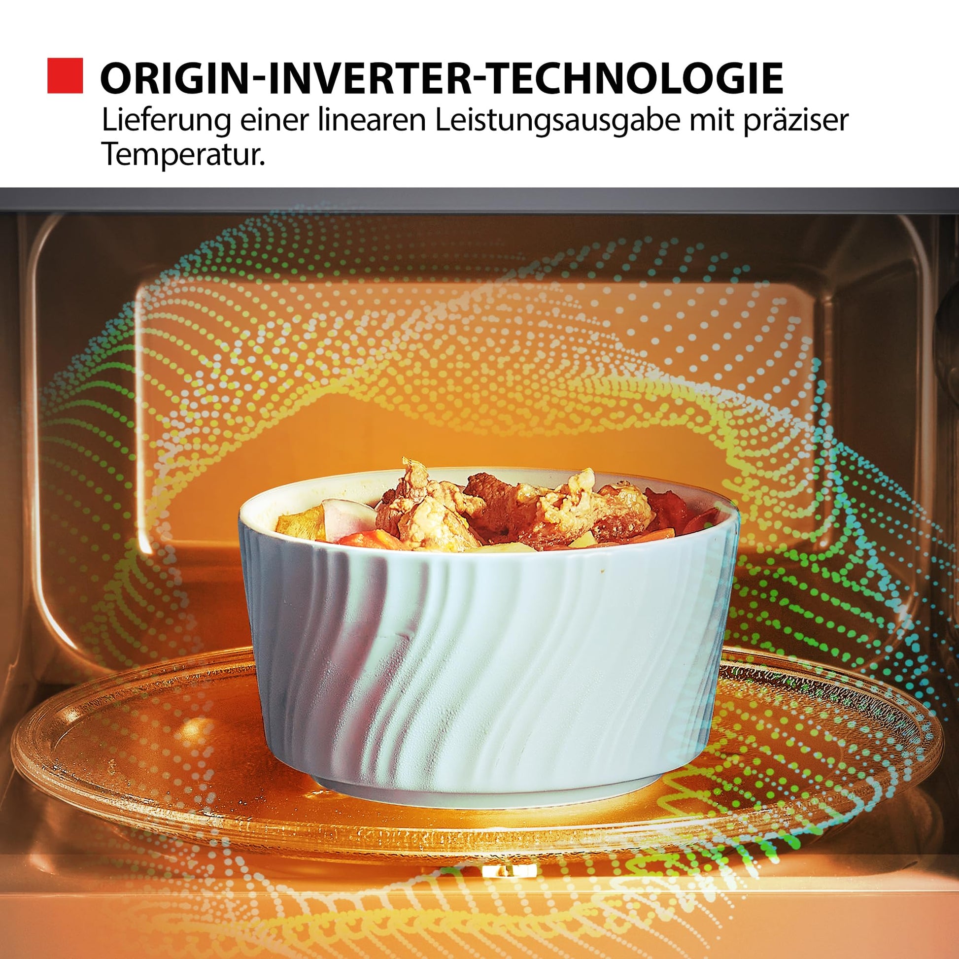 - Origin-Inverter-Technologie: Sorgt für eine konstante, präzise Leistungsabgabe, verkürzt die Kochzeit und spart Energie.
