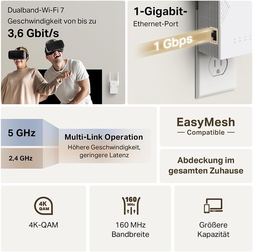 TP-Link RE225BE Wi-Fi 7 WLAN Repeater Dual-Band EasyMesh