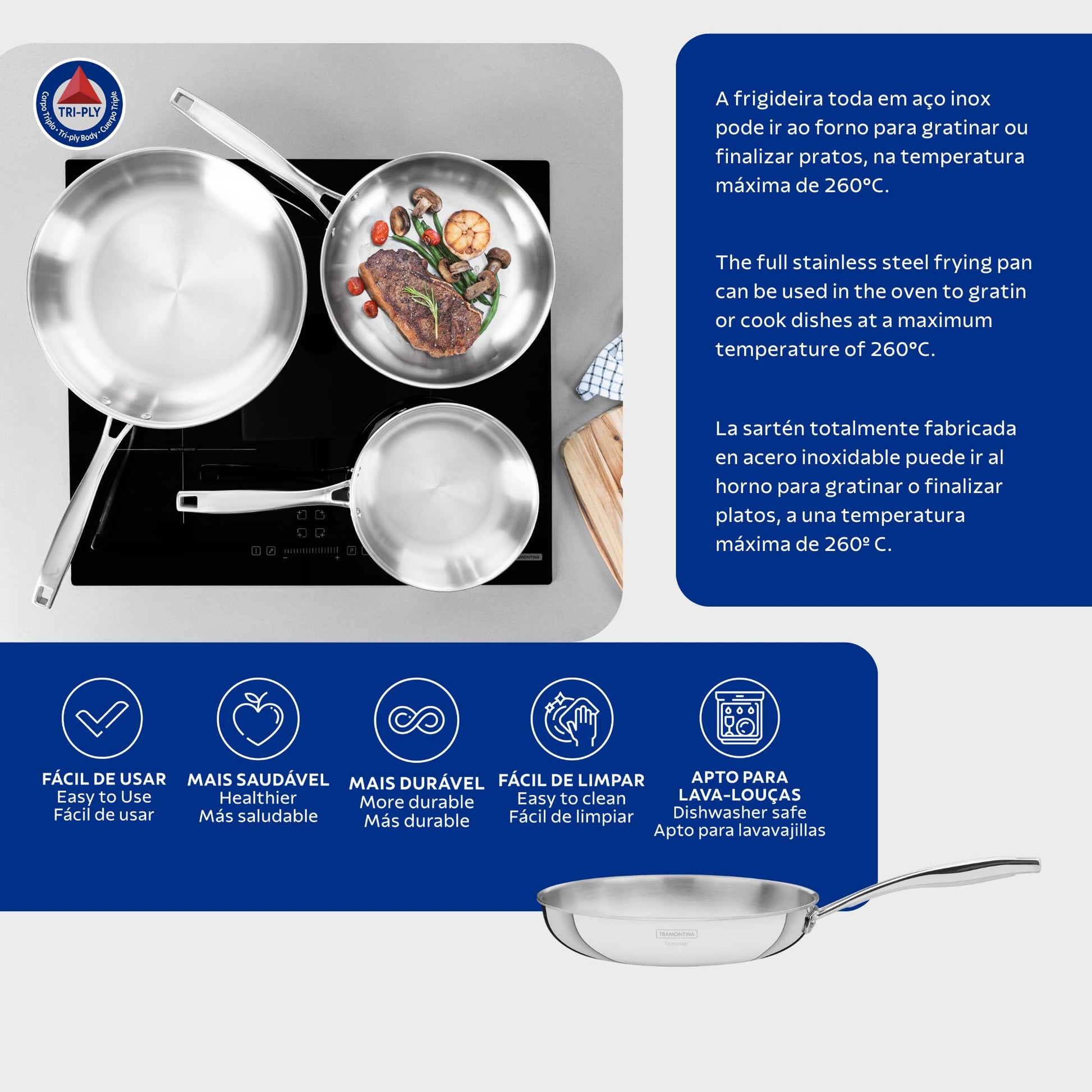 Tramontina Grano Bratpfanne – Edelstahl Induktion Ø 30 cm