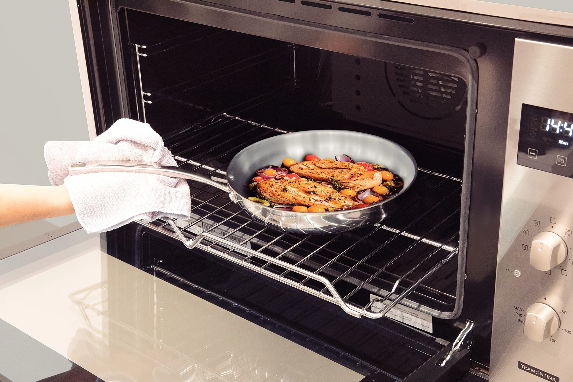 Dank ihrer Vielseitigkeit können Sie die Pfanne flexibel auf jedem Kochfeld verwenden und bei Bedarf direkt in den Backofen schieben, um Gerichte zu überbacken oder fertig zu garen. Der solide Griff gewährleistet dabei jederzeit einen sicheren Halt.