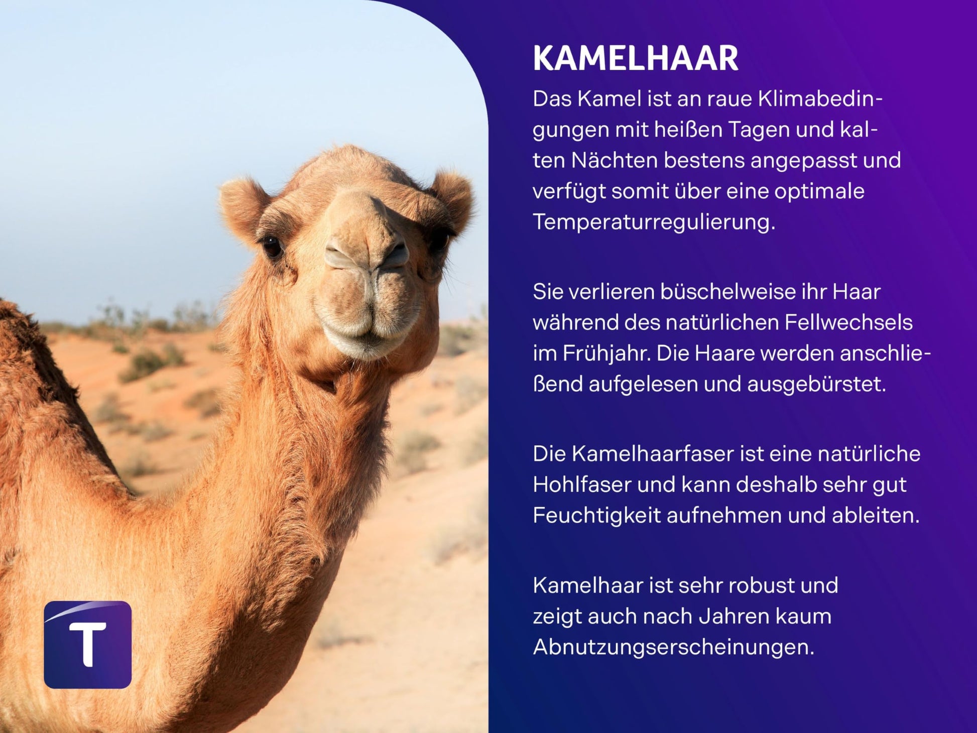 - Füllung: 1'000 g reines, feines Kamelhaar für eine optimale Klimaregulierung.