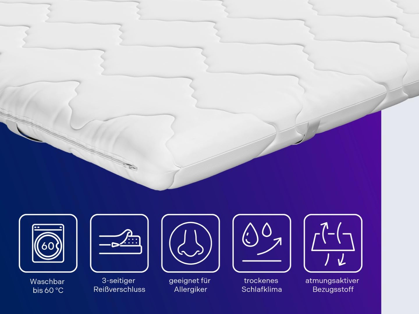 - Pflegehinweis: Der Bezug ist abnehmbar und maschinenwaschbar bis 60 °C. Bitte lassen Sie den Topper nach dem Auspacken für einige Zeit auslüften.