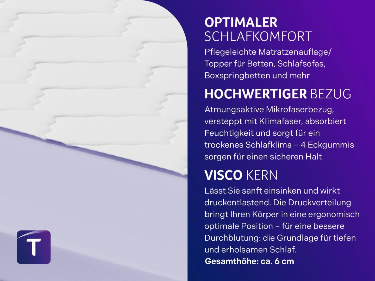 Werten Sie Ihr Bett, Schlafsofa oder Boxspringbett mit diesem viscoelastischen Matratzentopper auf und erleben Sie eine neue Dimension des Schlafkomforts. Er wurde nach deutschem Qualitätsstandard entwickelt, um Ihre Nächte spürbar erholsamer zu machen.