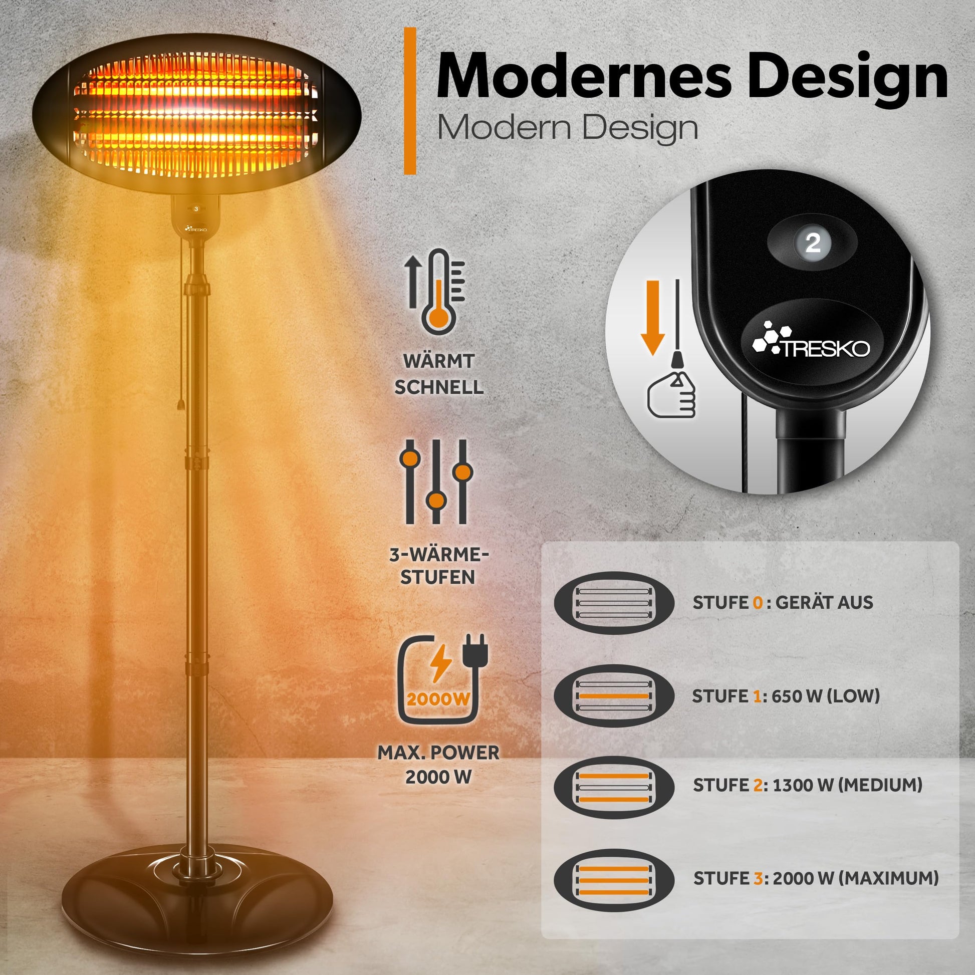 TRESKO Infrarot Stand-Heizstrahler 2000W - Terrassenstrahler