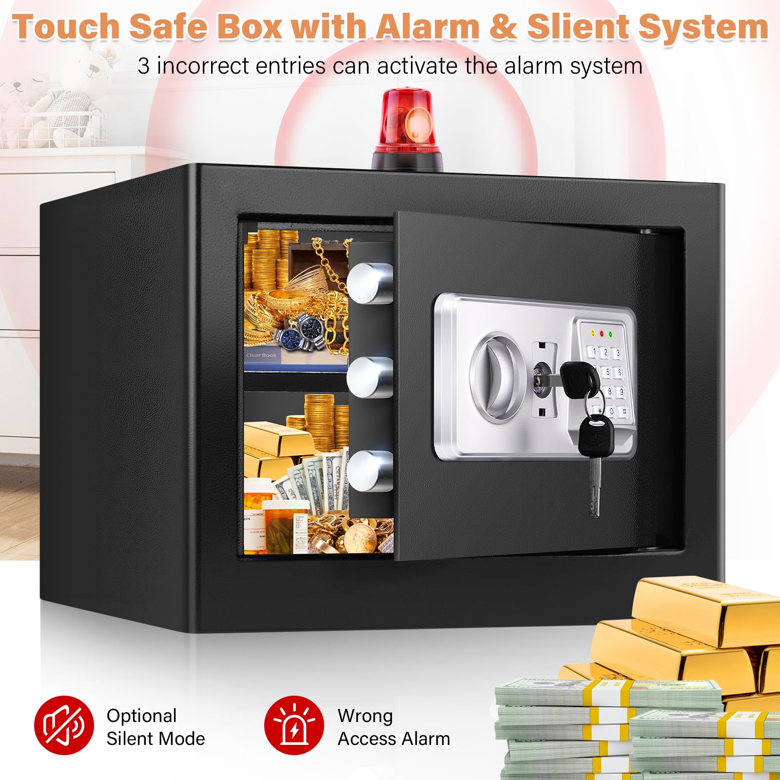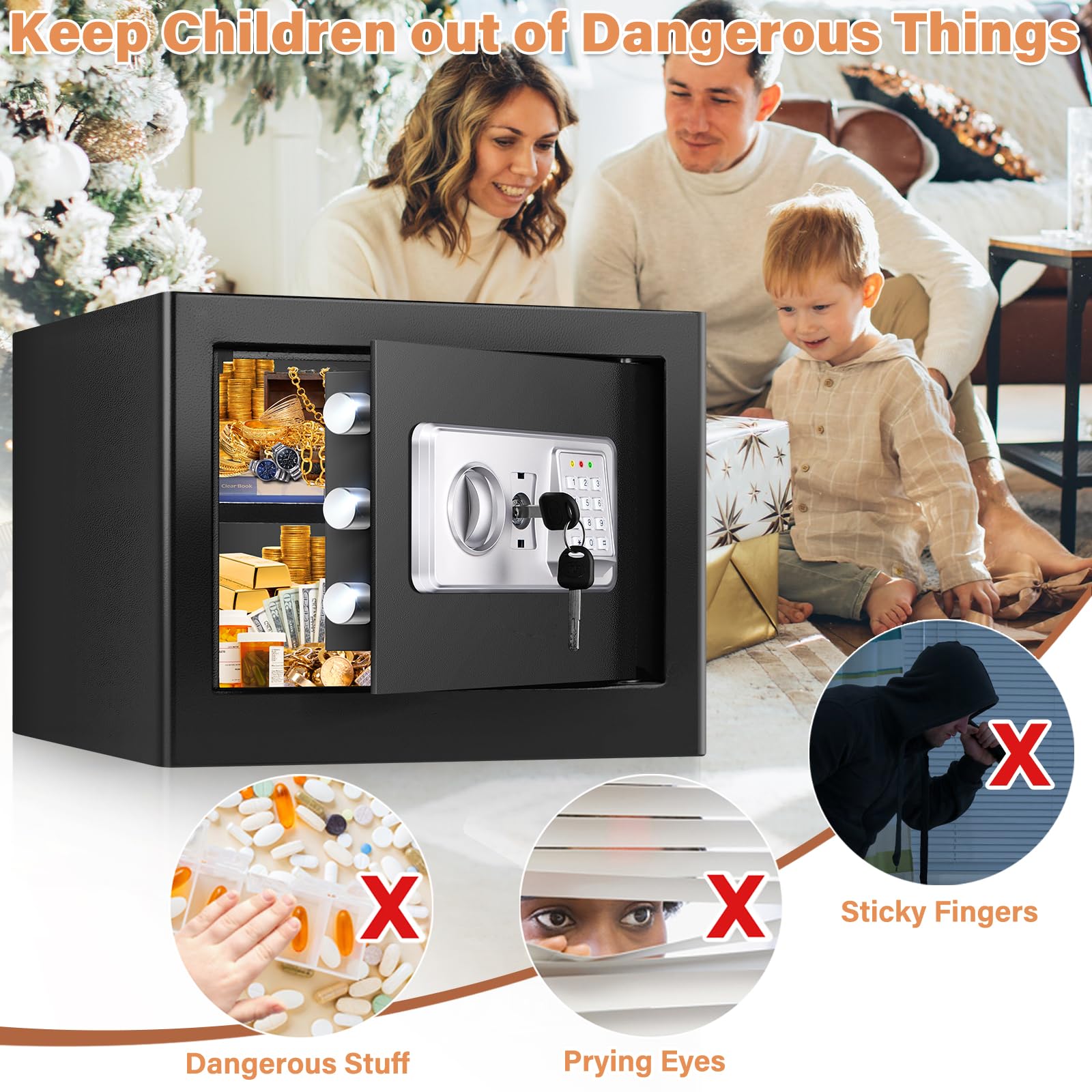 Schützen Sie Ihre Wertsachen zuverlässig vor Diebstahl, Feuer und Wasser. Dieser kompakte Tresor kombiniert eine robuste Bauweise mit modernen Sicherheitsfunktionen und eignet sich ideal für den Einsatz zu Hause oder im Büro.