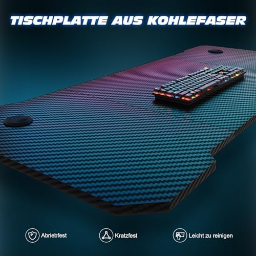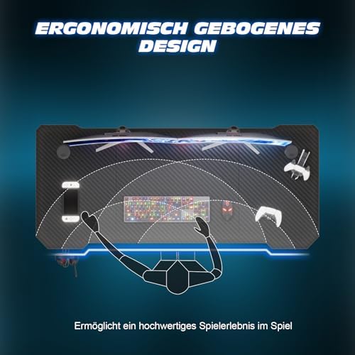 Dieser Gaming Tisch ist die ideale Wahl für alle, die Wert auf Stabilität, Funktionalität und eine beeindruckende Gaming-Ästhetik legen.