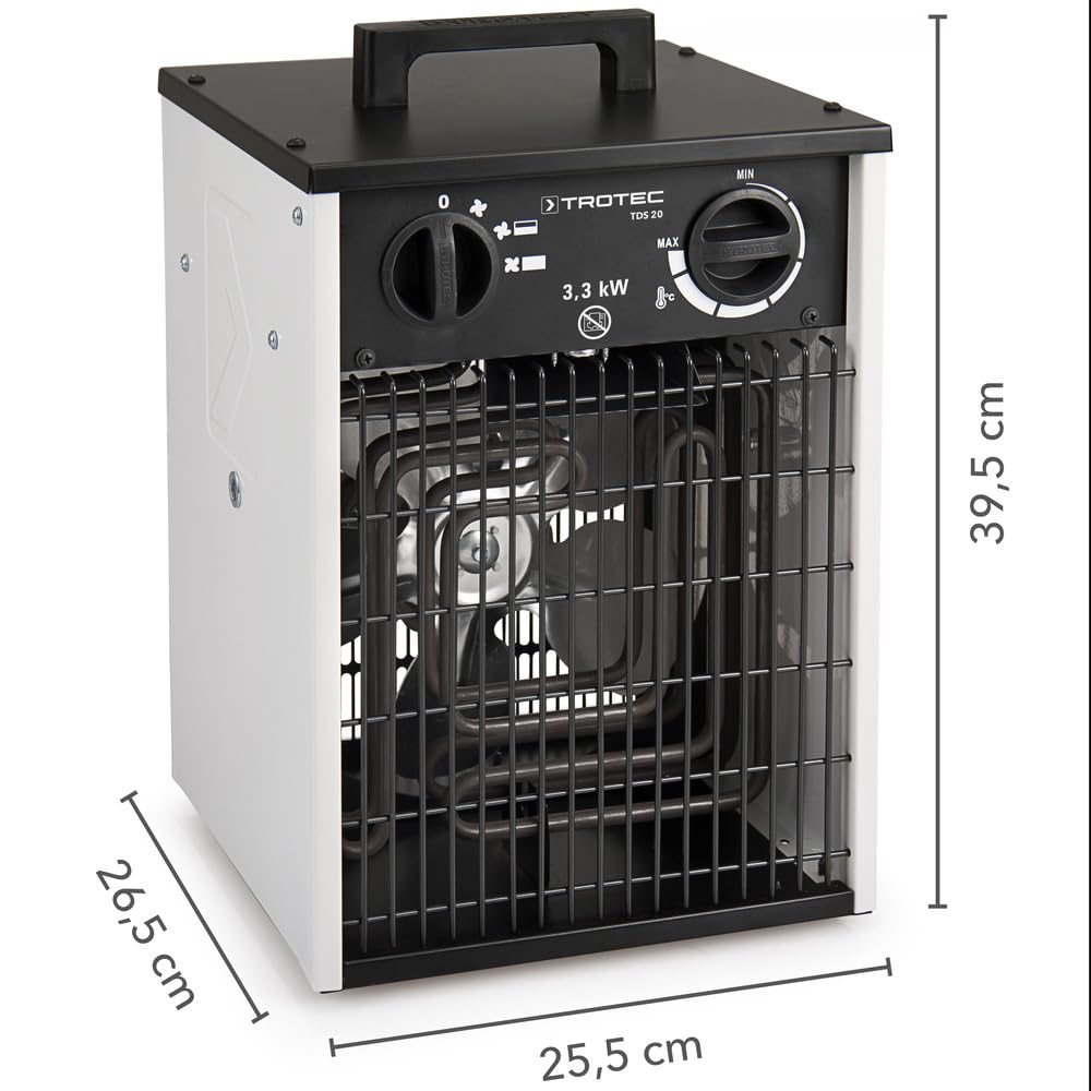 Der Elektro Heizlüfter TDS 20 von Trotec ist eine robuste und vielseitig einsetzbare Wärmequelle, die sich durch ihre hochwertige Ausstattung für verschiedenste Heizanforderungen in Innenräumen eignet.