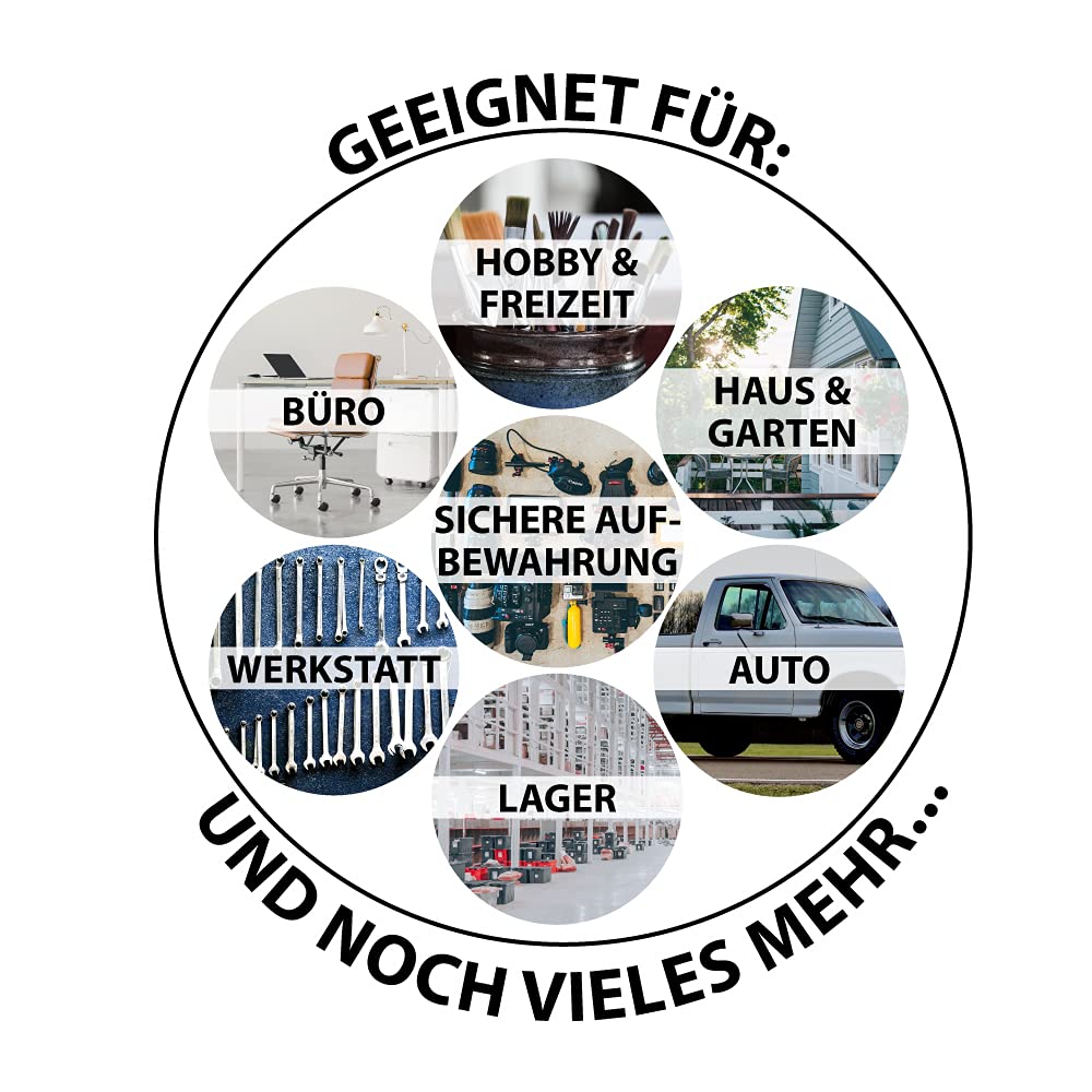 - Universell einsetzbar: Ideal als Deichselbox, aber auch perfekt geeignet zur Lagerung von Werkzeug und Material in Werkstatt, Garage und Büro.