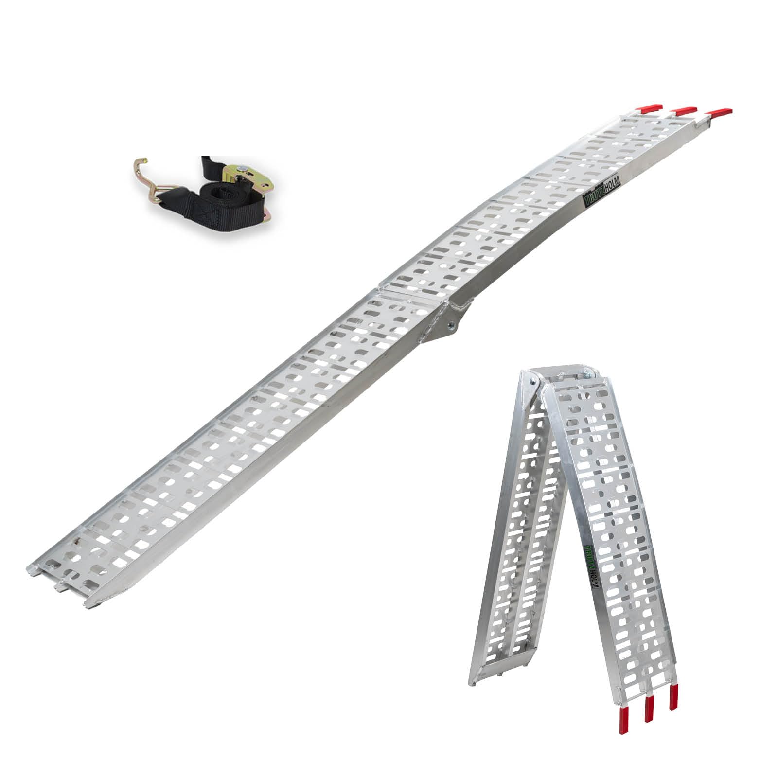 - Sichere Fixierung: Gummierte Auflageflächen schützen Ihr Fahrzeug oder den Anhänger vor Kratzern und verhindern effektiv ein Verrutschen der Rampe während des Gebrauchs. Ein mitgelieferter Spanngurt ermöglicht eine zusätzliche Sicherung.