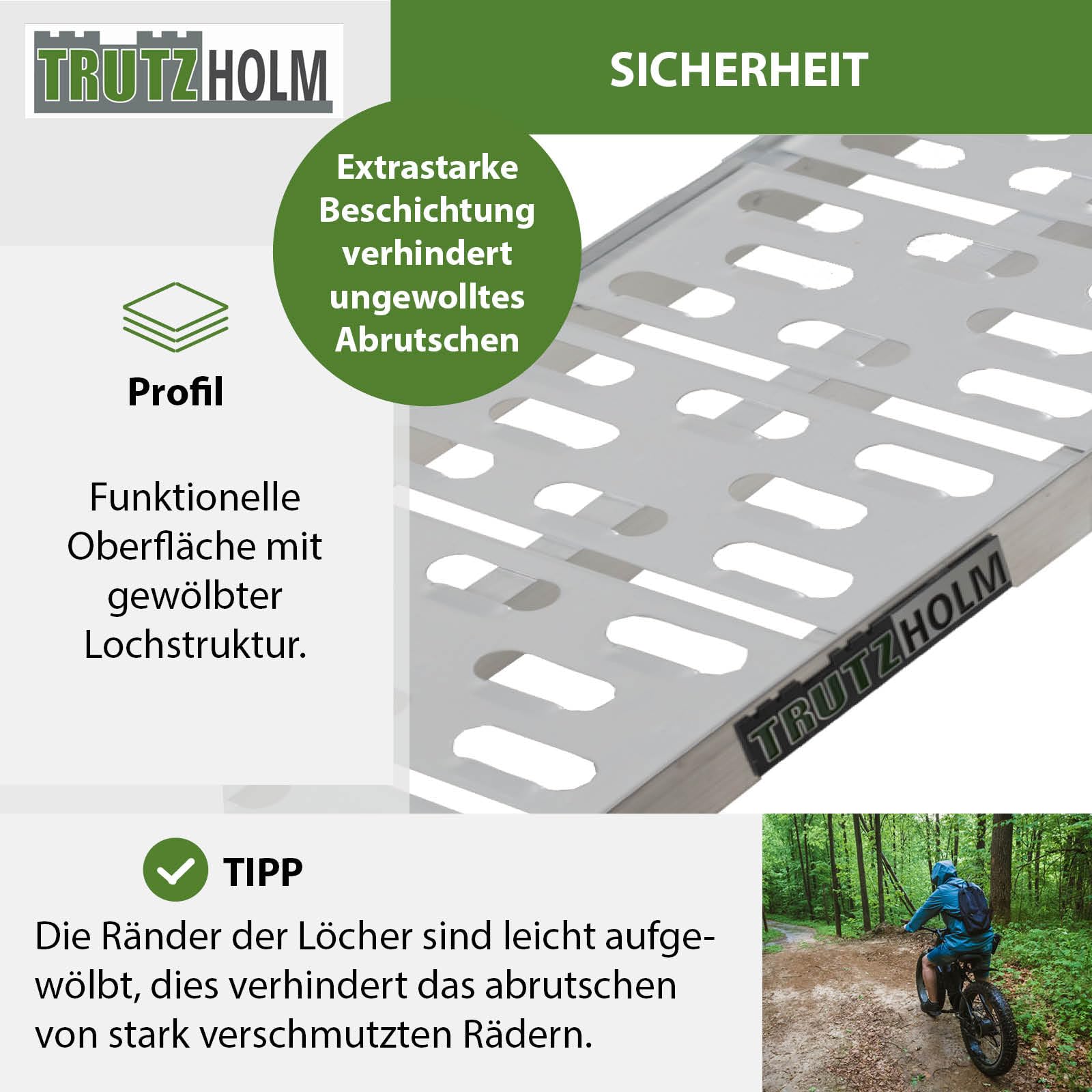 Die TRUTZHOLM Auffahrrampe ist ein unverzichtbarer Helfer für jeden, der sein Zweirad einfach und sicher transportieren möchte.