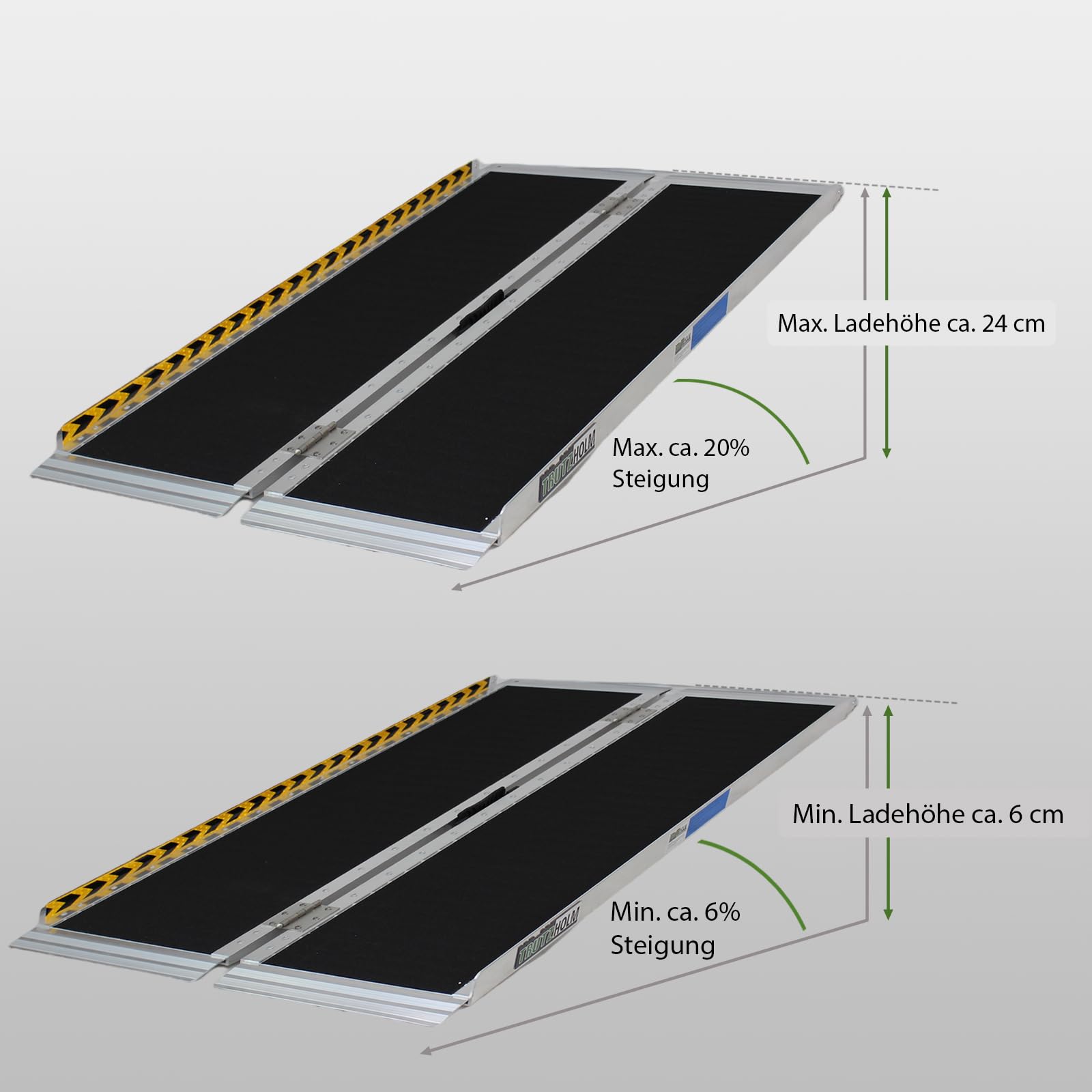 Um eine sichere und gut befahrbare Steigung zu gewährleisten, ist diese Rampe optimal für die Überwindung von Hindernissen wie einzelnen Treppenstufen oder Ladekanten mit einer Höhe von bis zu ca. 24 cm geeignet.