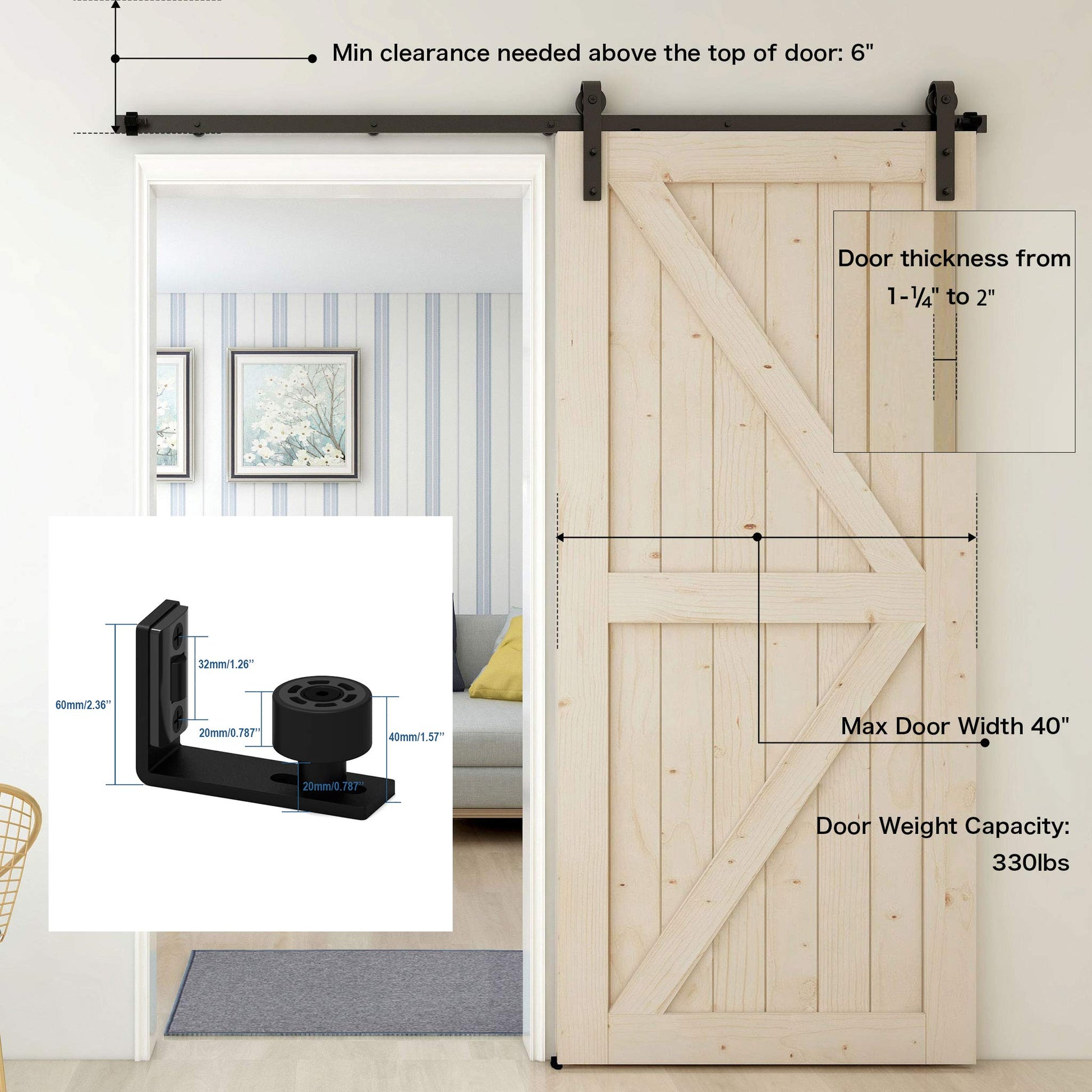Das System ist ideal für eine einzelne Holztür mit einer Dicke von 3 cm bis 5 cm und einer maximalen Breite von 120 cm. Dank der justierbaren Rollenschrauben lässt es sich flexibel an Ihr Türblatt anpassen.