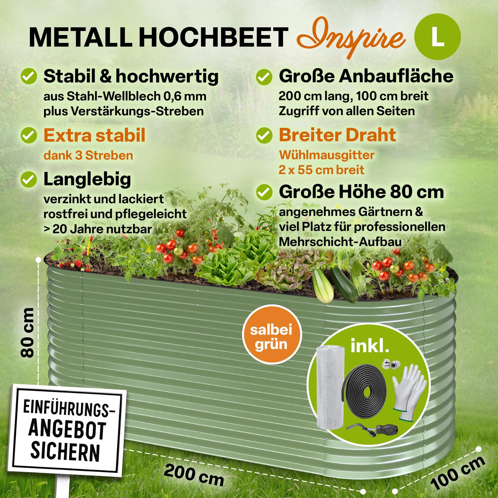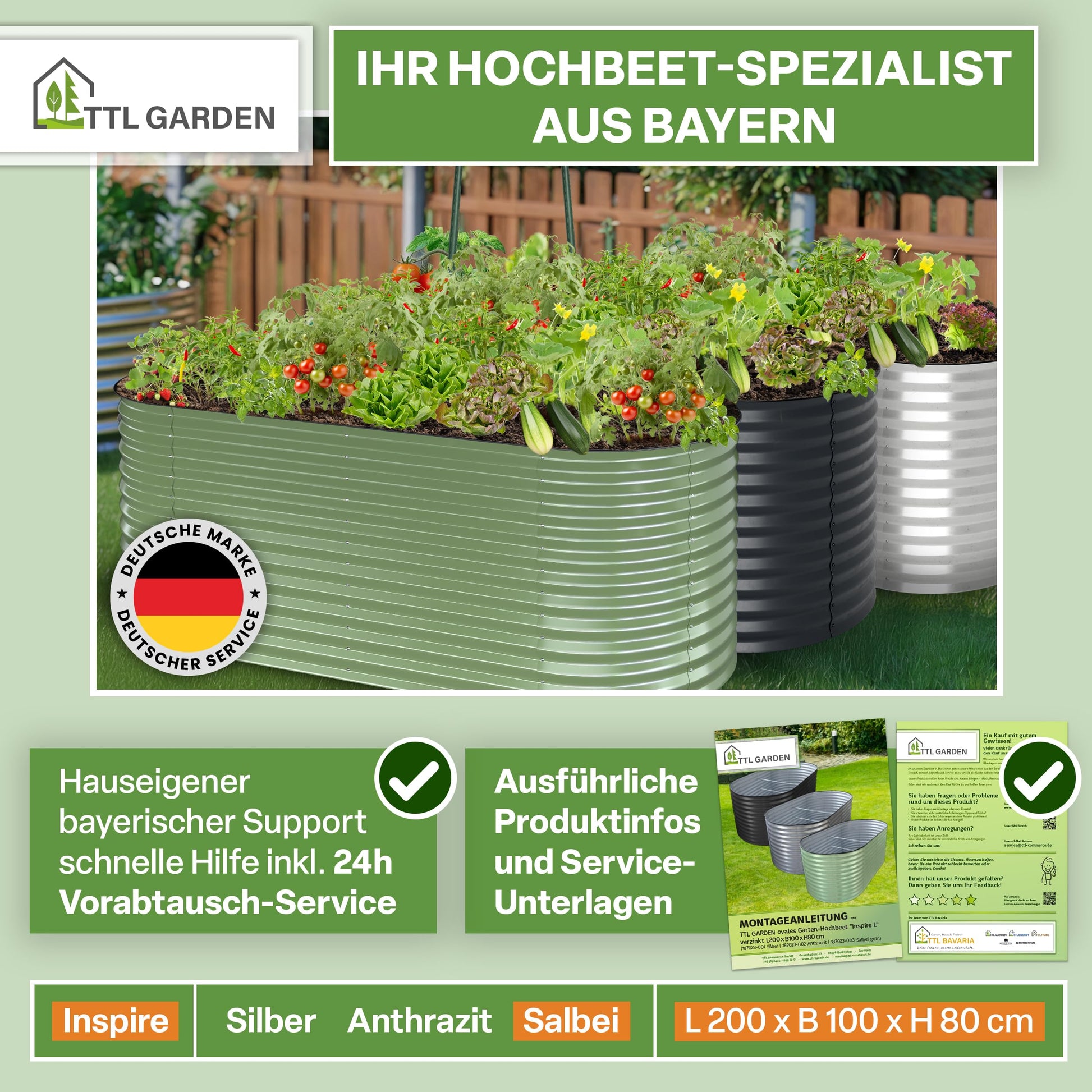 TTL GARDEN Inspire L Hochbeet – Salbei, 200x100x80cm, oval