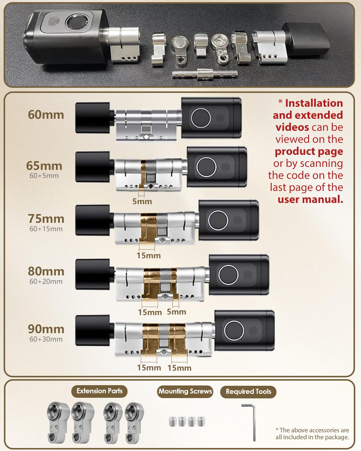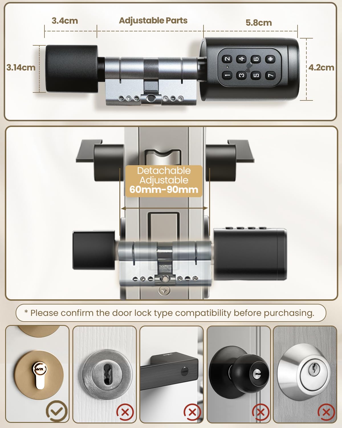 - Anpassbarer Schliesszylinder: Dank der verstellbaren Länge von 60 mm bis 90 mm ist das Schloss mit einer Vielzahl von Türen kompatibel.