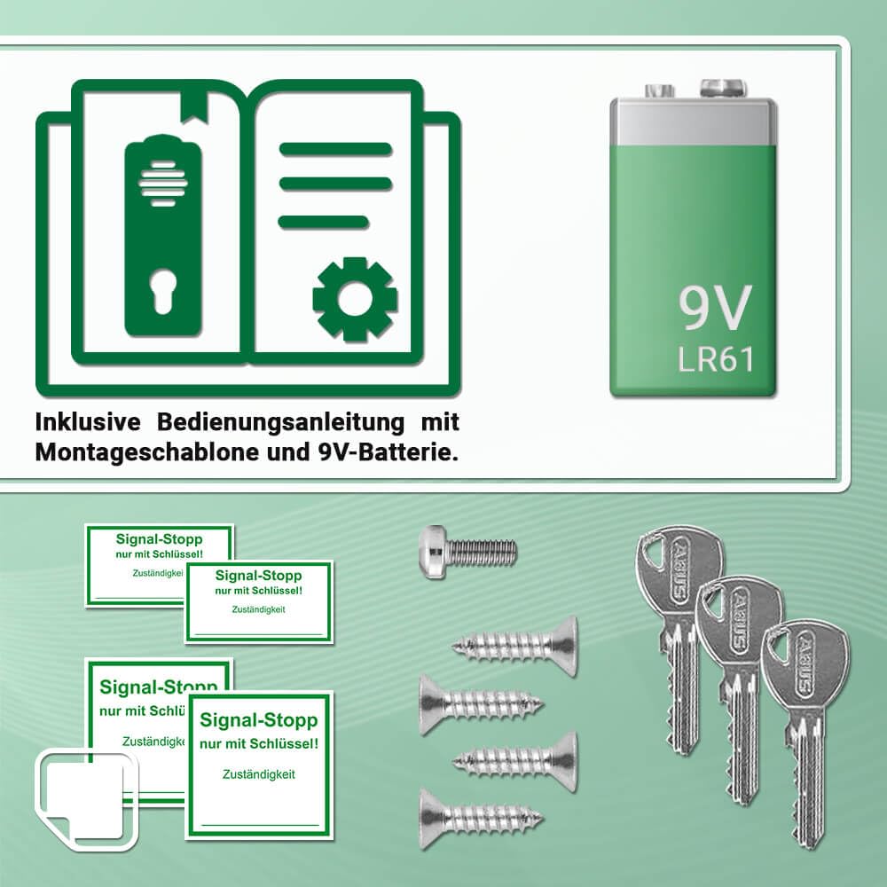 - Umfassender Lieferumfang: Inklusive Türwächter, Hinweisaufkleber, Schrauben-Set, Schlüssel, Batterie und Anleitung