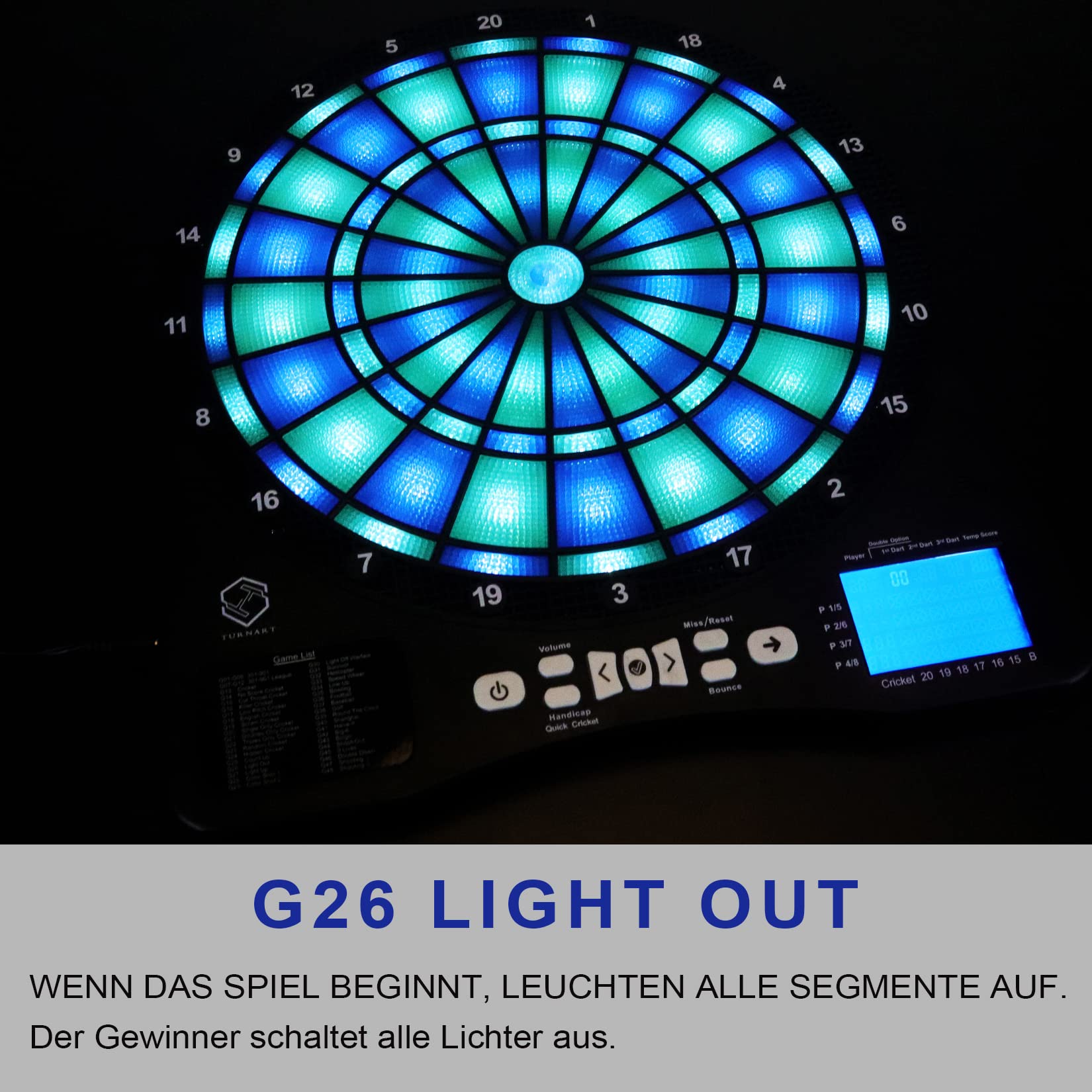 - Innovative LED-Anzeige: Die beleuchteten Segmente schaffen ein völlig neues Spielgefühl. Wählen Sie aus 48 Spielen mit 315 Varianten, einschliesslich 17 exklusiver Licht-Spielmodi mit optional beweglichen Zielen.