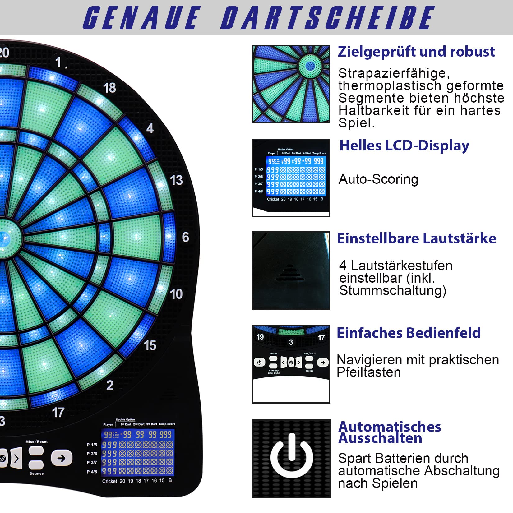 Erleben Sie Dart-Spass auf einem neuen Level mit dieser elektronischen Dartscheibe. Dank innovativer LED-Technologie und einer riesigen Spielauswahl sorgt sie für ein einzigartiges und belebendes Spielerlebnis für Freunde und Familie.