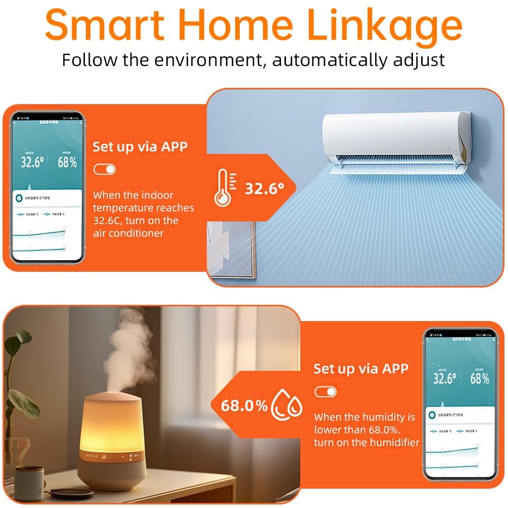 Schaffen Sie ein vollautomatisches Wohlfühlklima. Diese Sensoren ermöglichen intelligente Verknüpfungen mit anderen Tuya-kompatiblen Geräten. Legen Sie Regeln fest, sodass sich beispielsweise Ihre Klimaanlage automatisch einschaltet, wenn eine bestimmte Temperatur überschritten wird, oder der Luftbefeuchter startet, sobald die Luft zu trocken wird. So sorgen Sie mühelos für optimale Bedingungen im Babyzimmer, Weinkeller oder Gewächshaus.
