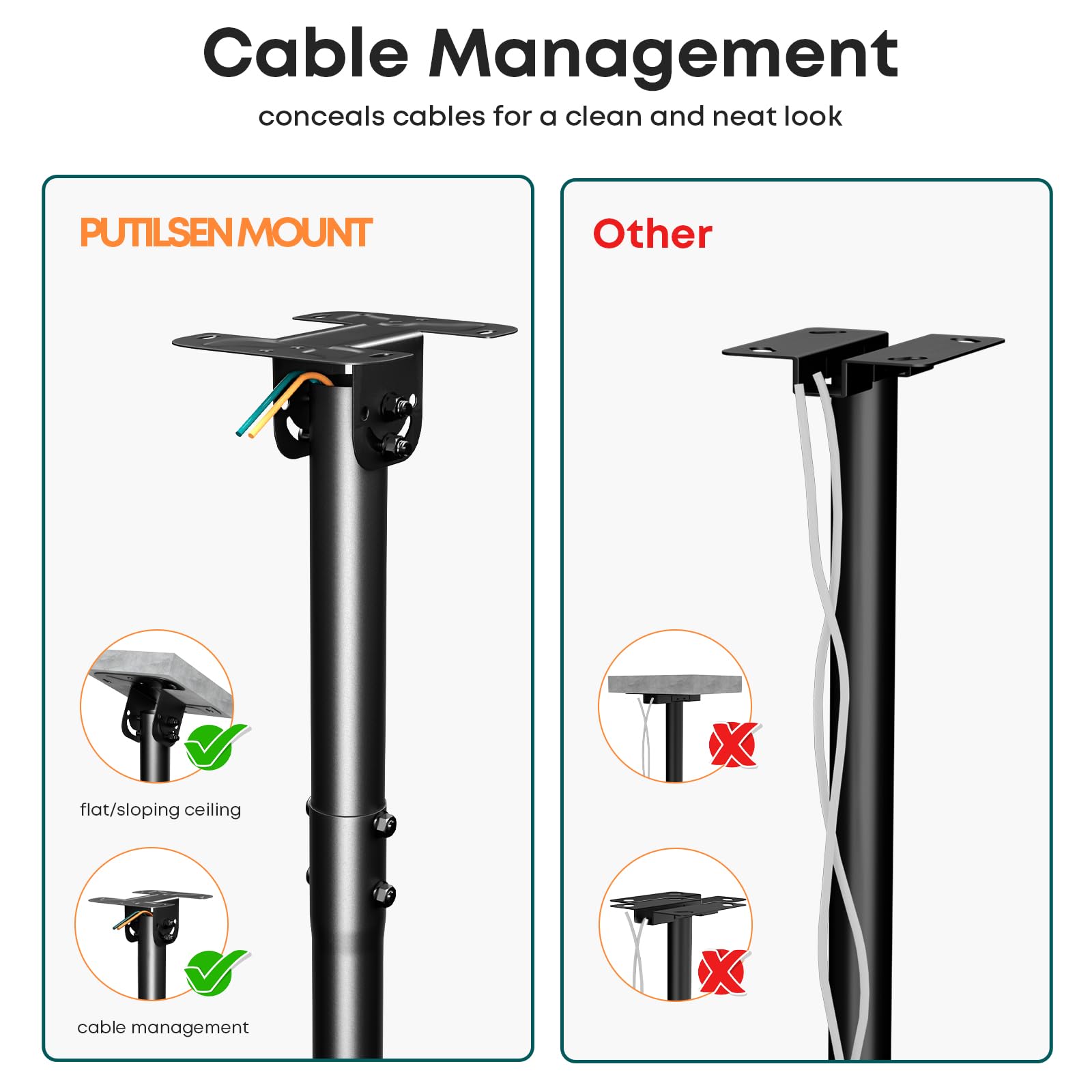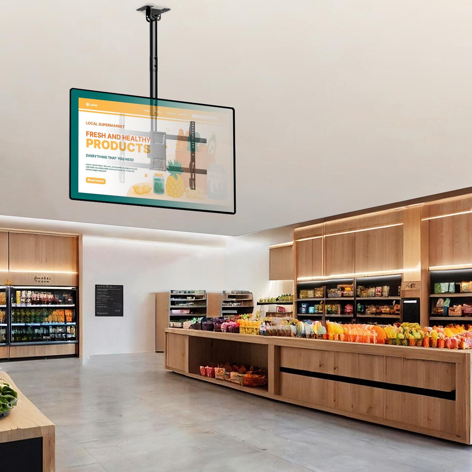 Vielseitige Installationsmöglichkeiten: Diese TV-Halterung ist nicht nur für flache, sondern auch für schräge Decken konzipiert. Sie ist die perfekte Lösung für Lofts, Büros, Gastronomiebetriebe oder immer dann, wenn eine Wandmontage nicht möglich oder erwünscht ist.