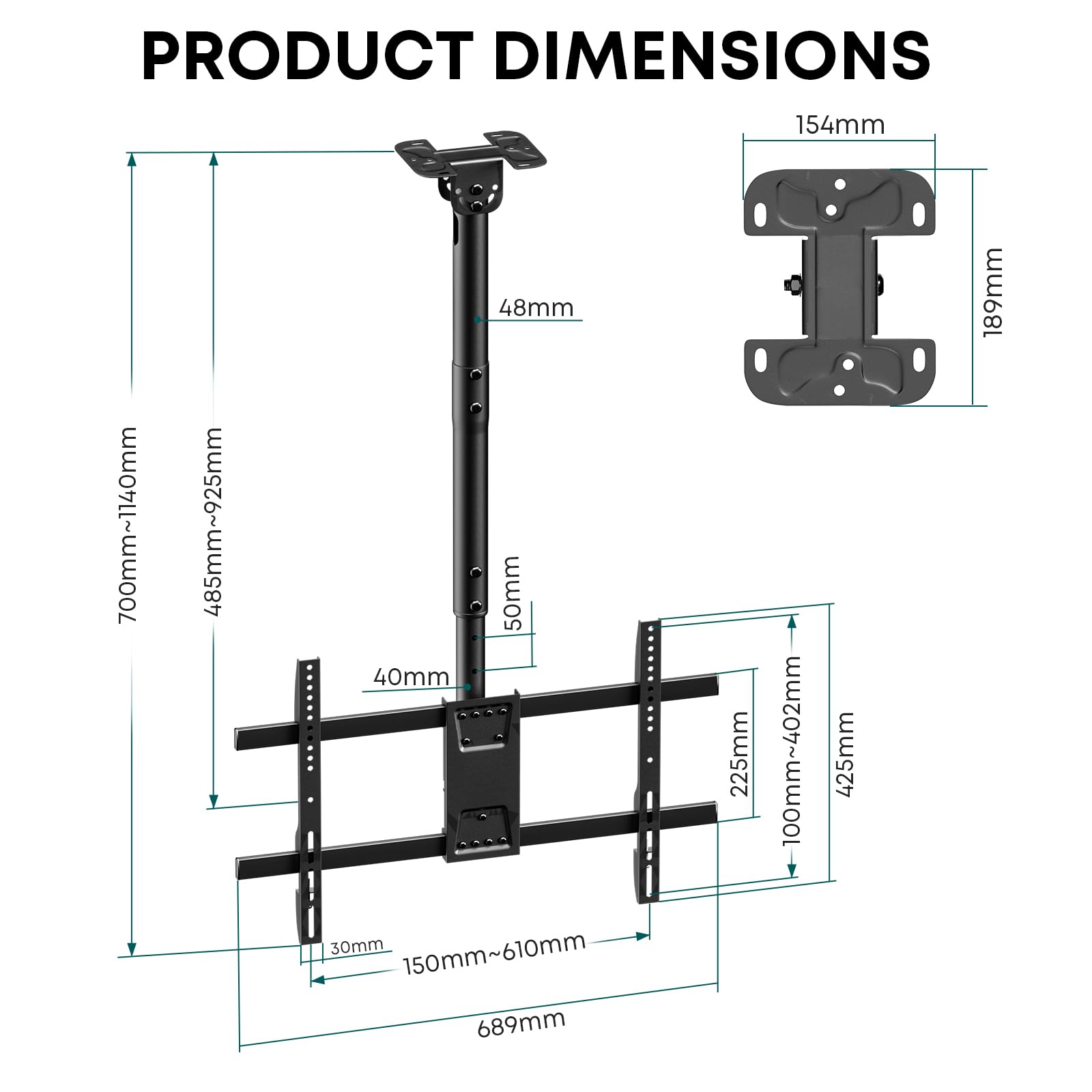 Diese robuste und flexible Deckenhalterung bietet eine sichere und platzsparende Lösung, um Ihren Fernseher optimal in jedem Raum zu positionieren und das Seherlebnis zu maximieren.