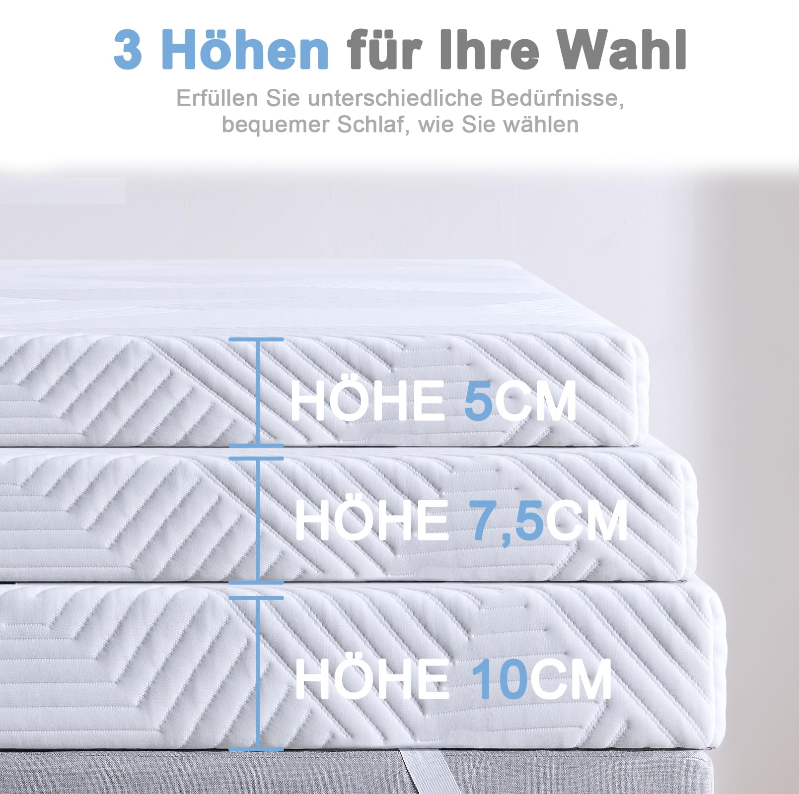 - Optimale Höhe: Mit einer Komfort-Höhe von 7,5 cm bietet dieser Topper eine deutliche Aufwertung für Ihre bestehende Matratze.