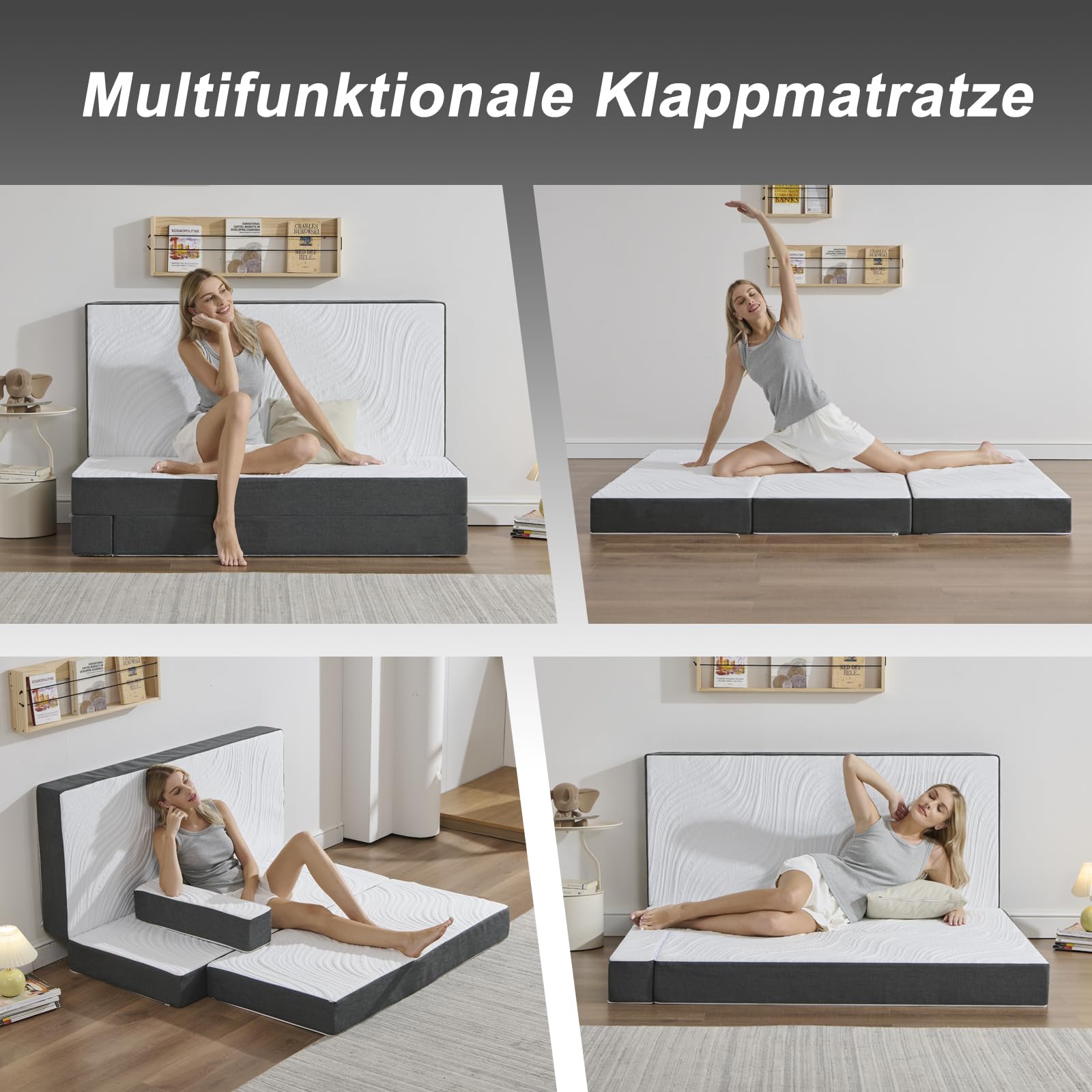 Ja, absolut. Die Matratze lässt sich 4-teilig zu einem kompakten Würfel zusammenfalten. Dank des integrierten Tragegriffs können Sie sie mühelos transportieren und bei Nichtgebrauch platzsparend im Schrank oder in einer Nische verstauen.