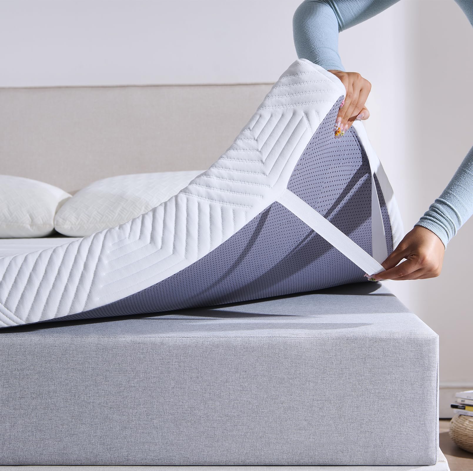 Die Pflege ist sehr einfach. Der Topper verfügt über einen abnehmbaren Bezug mit Reissverschluss, den Sie bequem bei 40°C in der Waschmaschine waschen können. Dies sorgt jederzeit für ein frisches und hygienisches Schlaferlebnis.