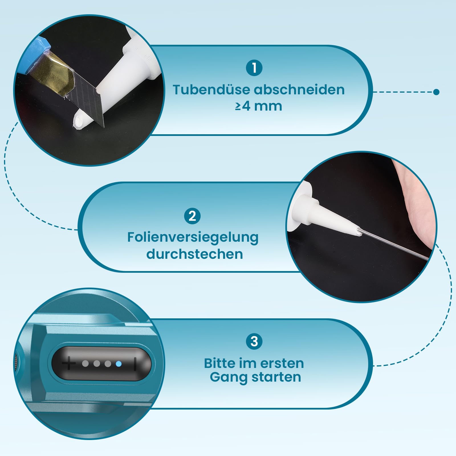 Präzise Kontrolle für perfekte Fugen: Dank der einstellbaren Geschwindigkeit haben Sie die volle Kontrolle über den Materialfluss. So gelingen Ihnen saubere und gleichmässige Fugen, egal ob bei Silikon, Acryl oder anderen Dichtstoffen.