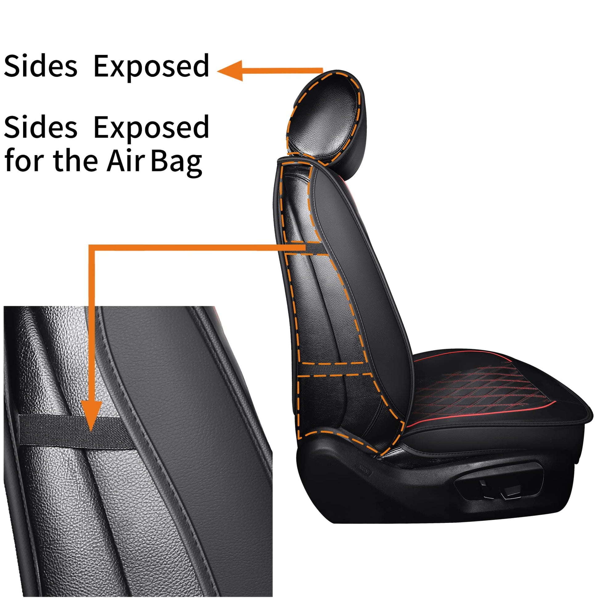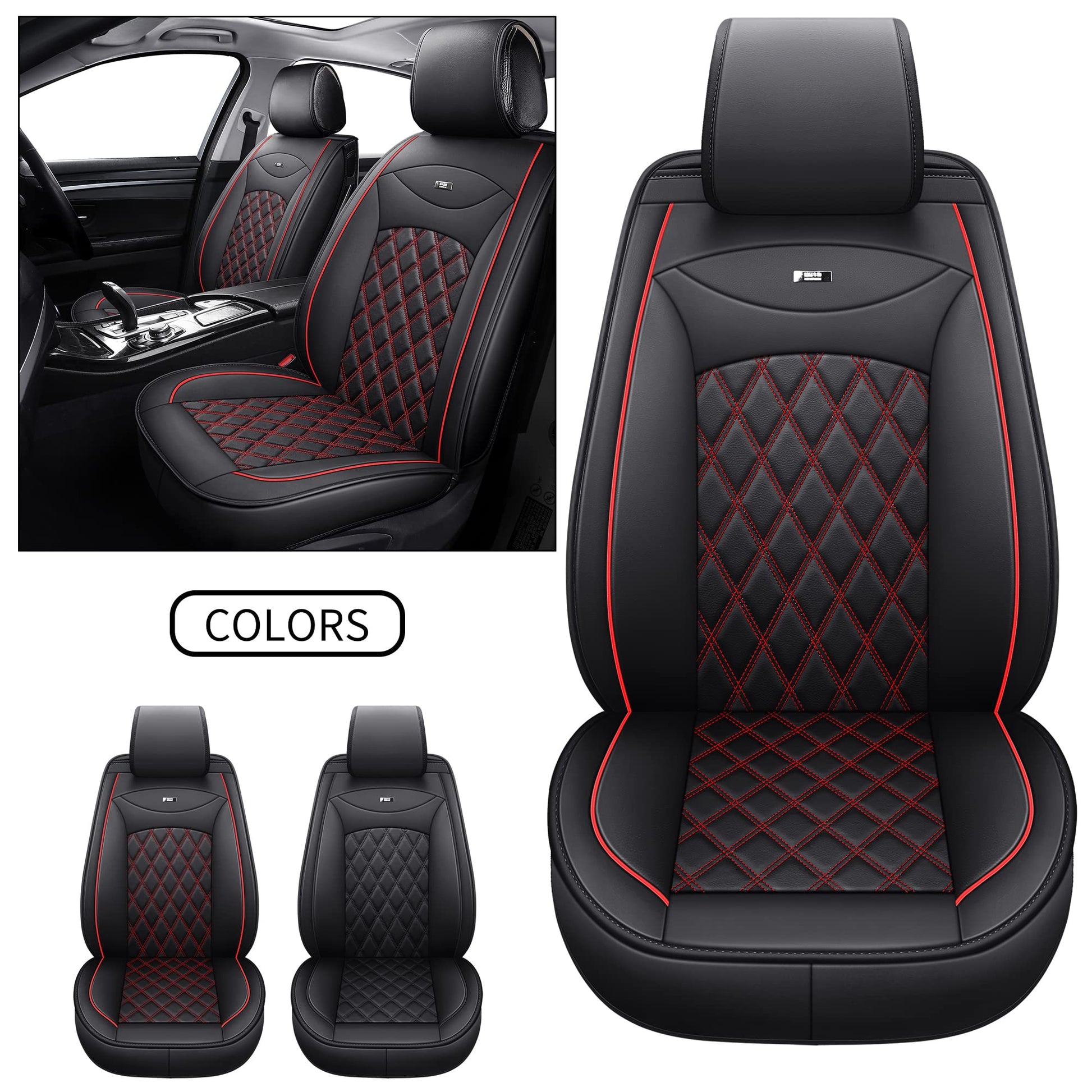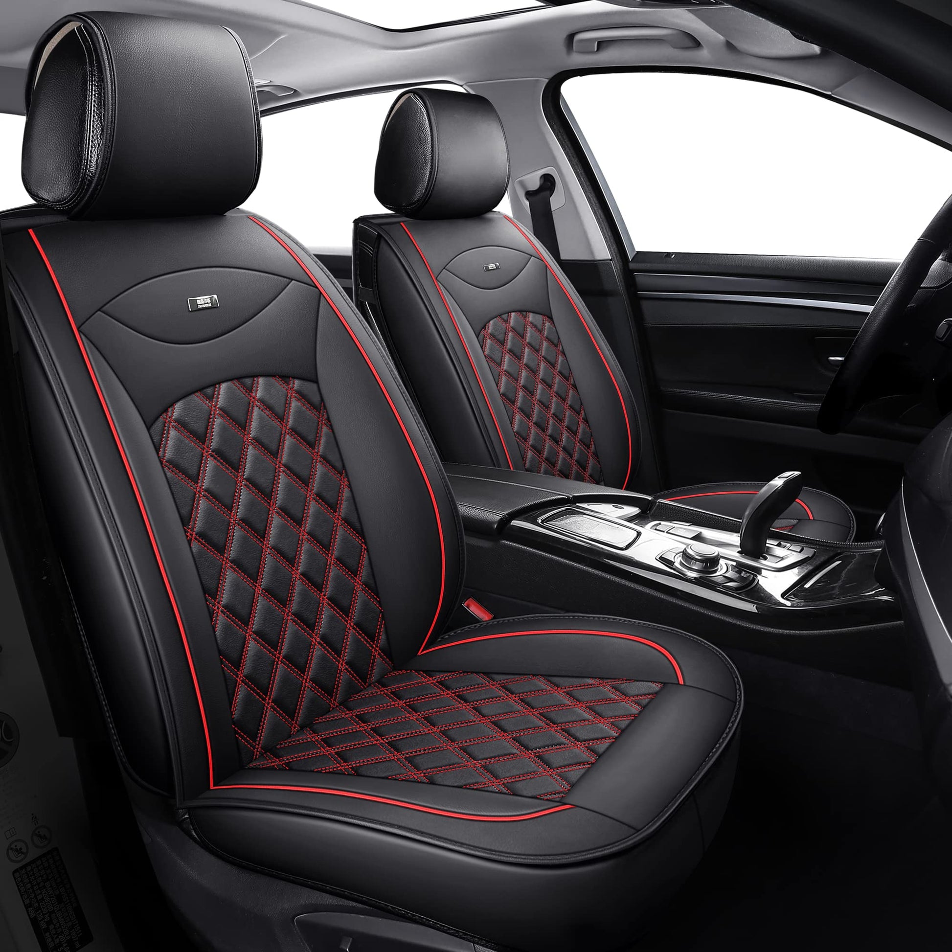 Udpomb Auto Vordersitzbezüge 2er Set Leder Schwarz-Rot Rhombus