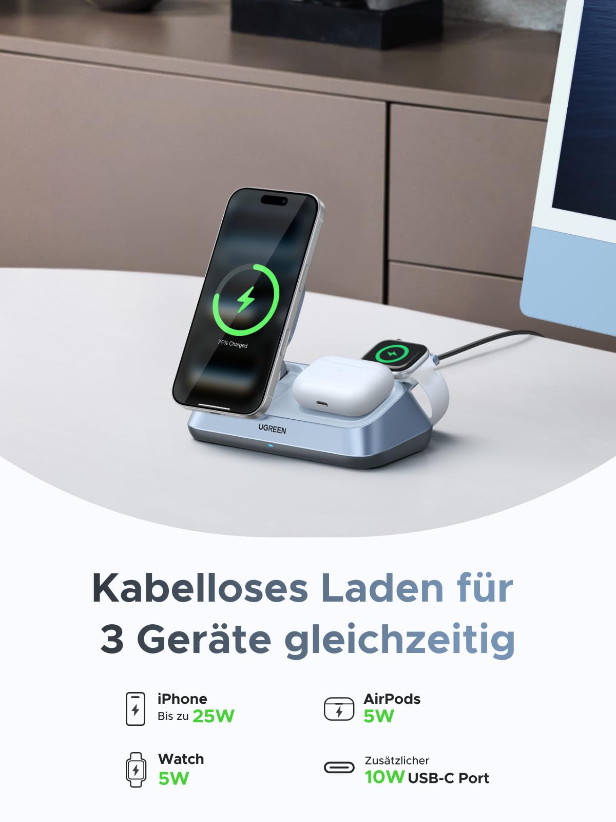 UGREEN MagFlow 3-in-1 Magnetic Wireless Ladeständer 25W Qi2