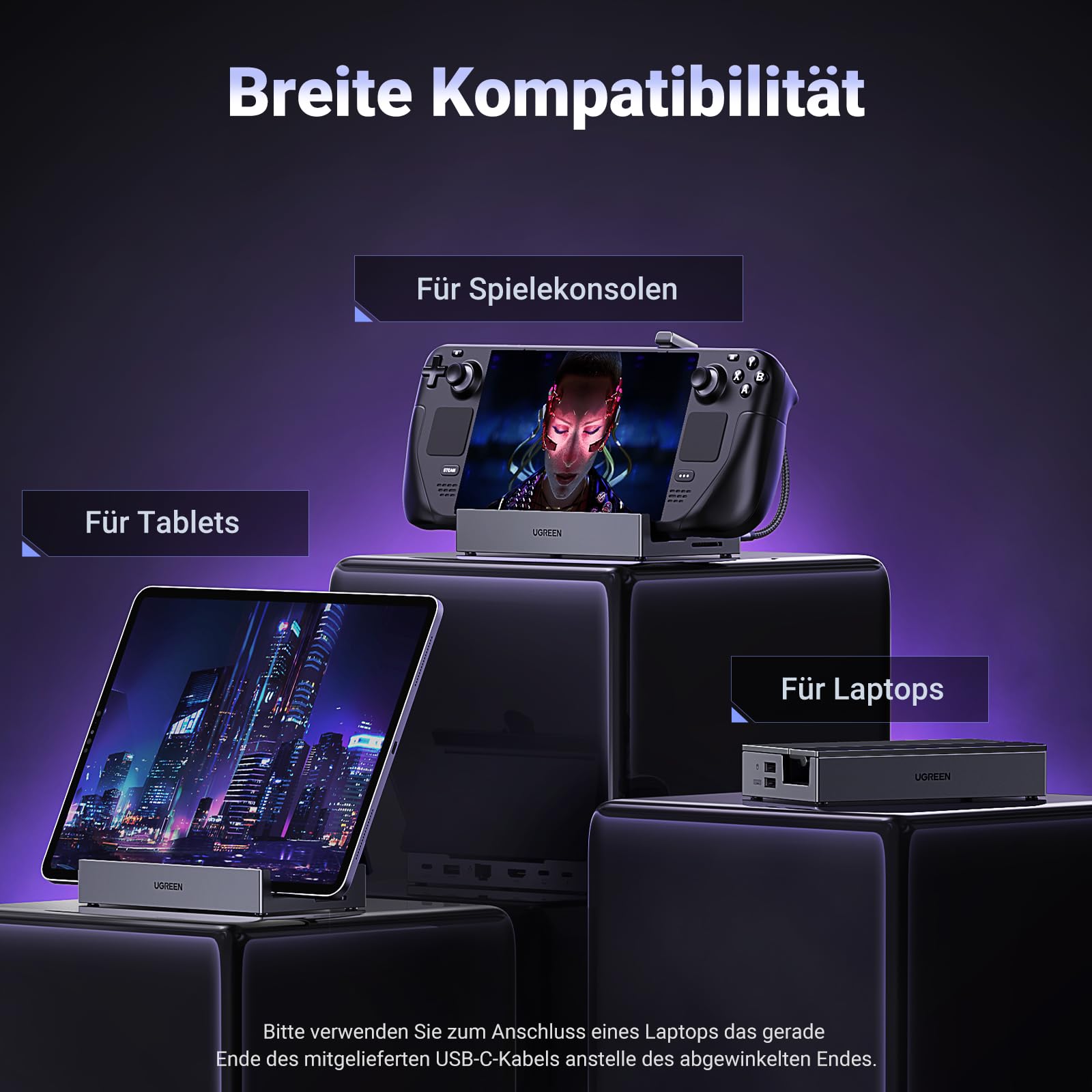 UGREEN Steam Deck Dock 9-in-1 Dockingstation – 4K HDMI mit Ständer