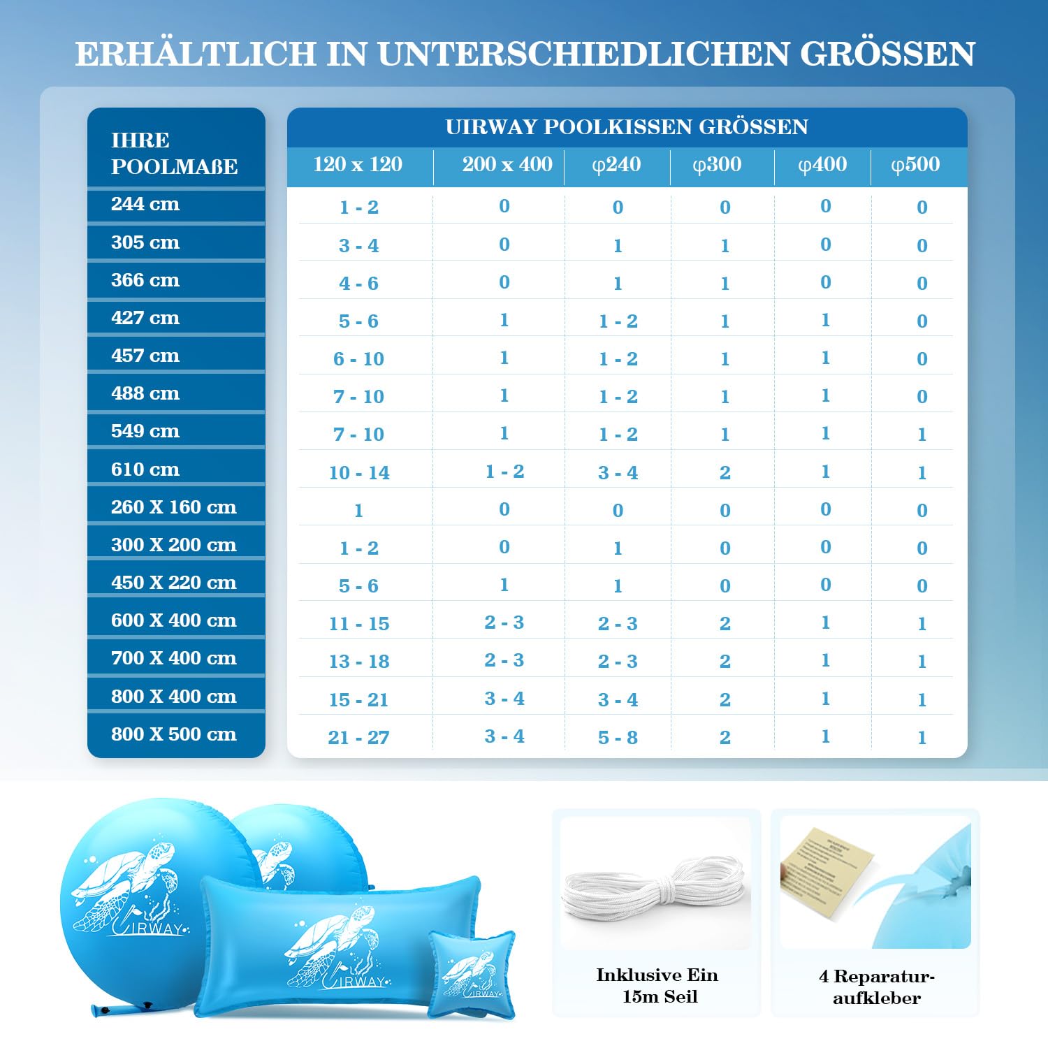 UIRWAY Poolkissen Winter XXL Rund 4m – Für Poolüberwinterung