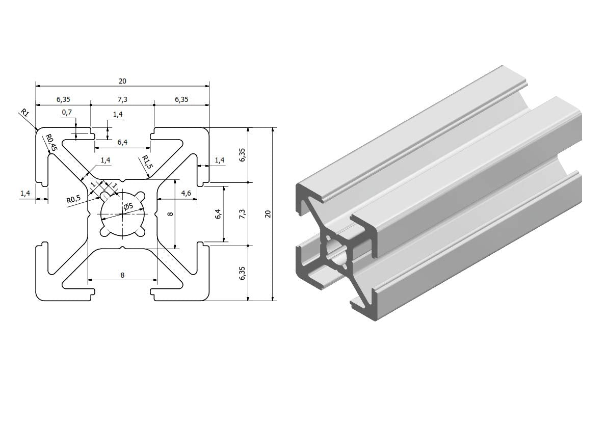- Profiltyp: Bewährter B-Typ mit den Massen 20x20 mm und einer durchgehenden 6 mm Nut.
