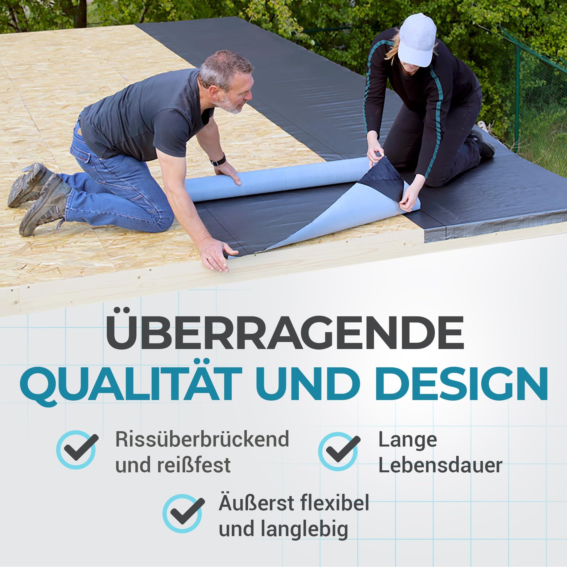 Die Folie ist ideal für Dächer von Gartenhäusern, Carports und anderen Nebengebäuden. Ihr Hauptvorteil ist die einfache, selbstklebende Verlegung ohne Spezialwerkzeug oder Schweissbrenner, was sie zu einer sauberen und schnellen Alternative zu herkömmlicher Dachpappe macht.