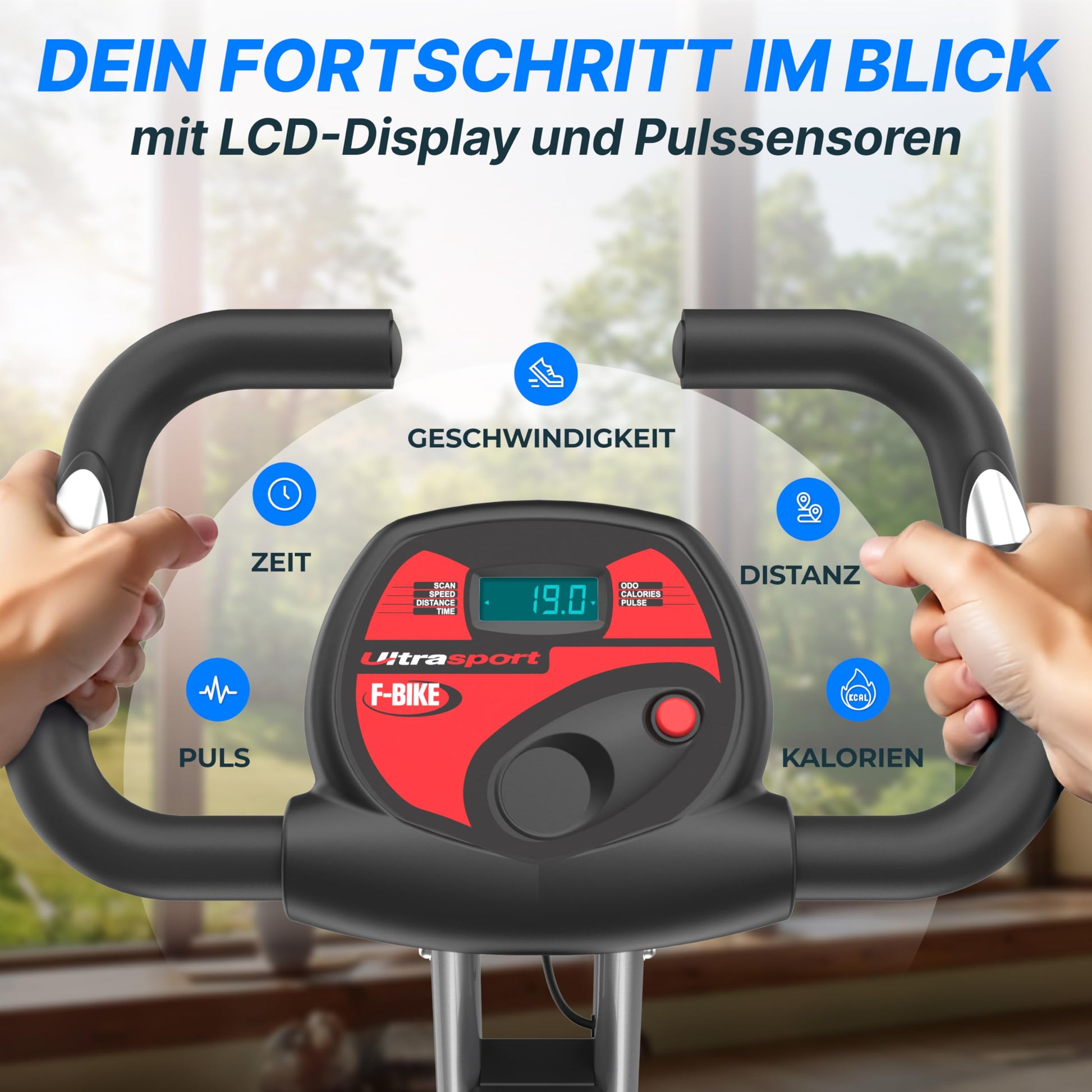 Mit diesem klappbaren Heimtrainer von Ultrasport integrieren Sie Ihr Fitnesstraining mühelos in den Alltag. Das kompakte Fitness-Velo ist die ideale Lösung für ein effektives Workout in den eigenen vier Wänden, auch bei wenig Platz.