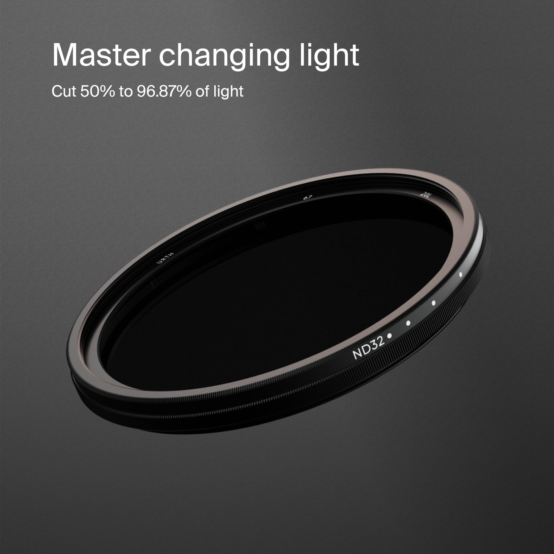 Passen Sie Ihre Belichtung im Handumdrehen an, ohne Blende oder ISO-Wert ändern zu müssen. Dieser Filter ist ein ideales Werkzeug für die Landschaftsfotografie und Videografie, wo schnelle Reaktionen auf wechselndes Licht entscheidend sind.