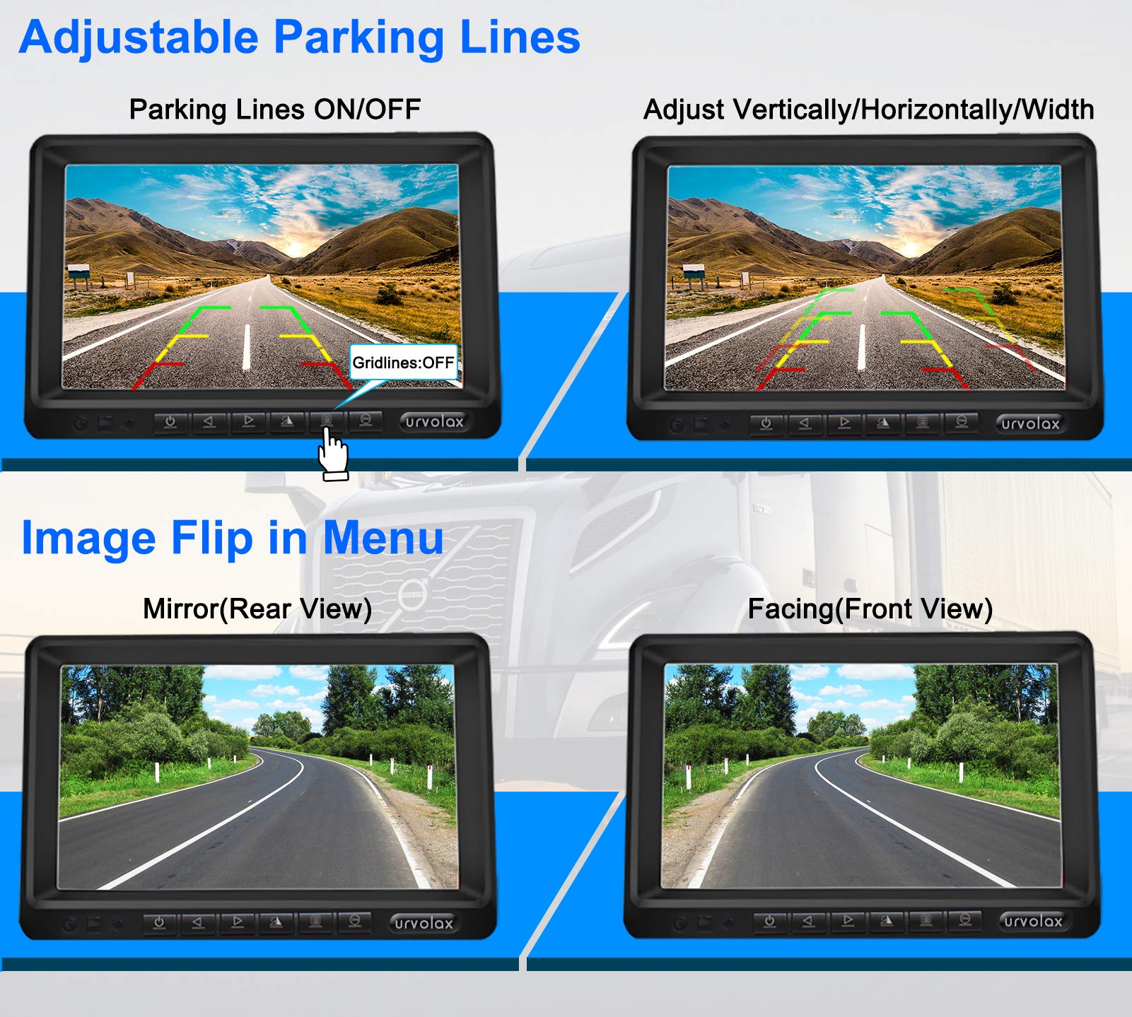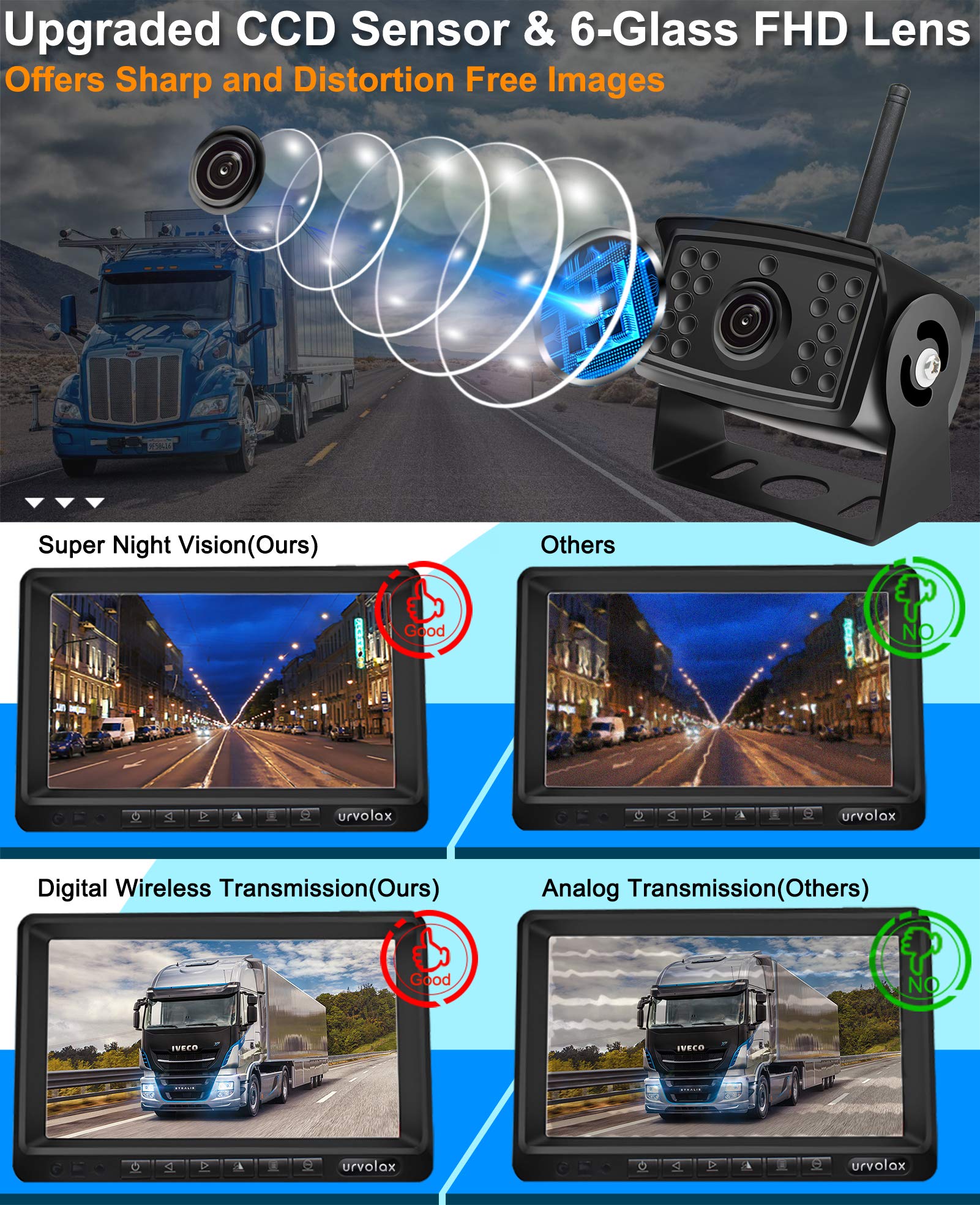 URVOLAX UR61X Funk-Rückfahrkamera - 7 Zoll HD IP69K
