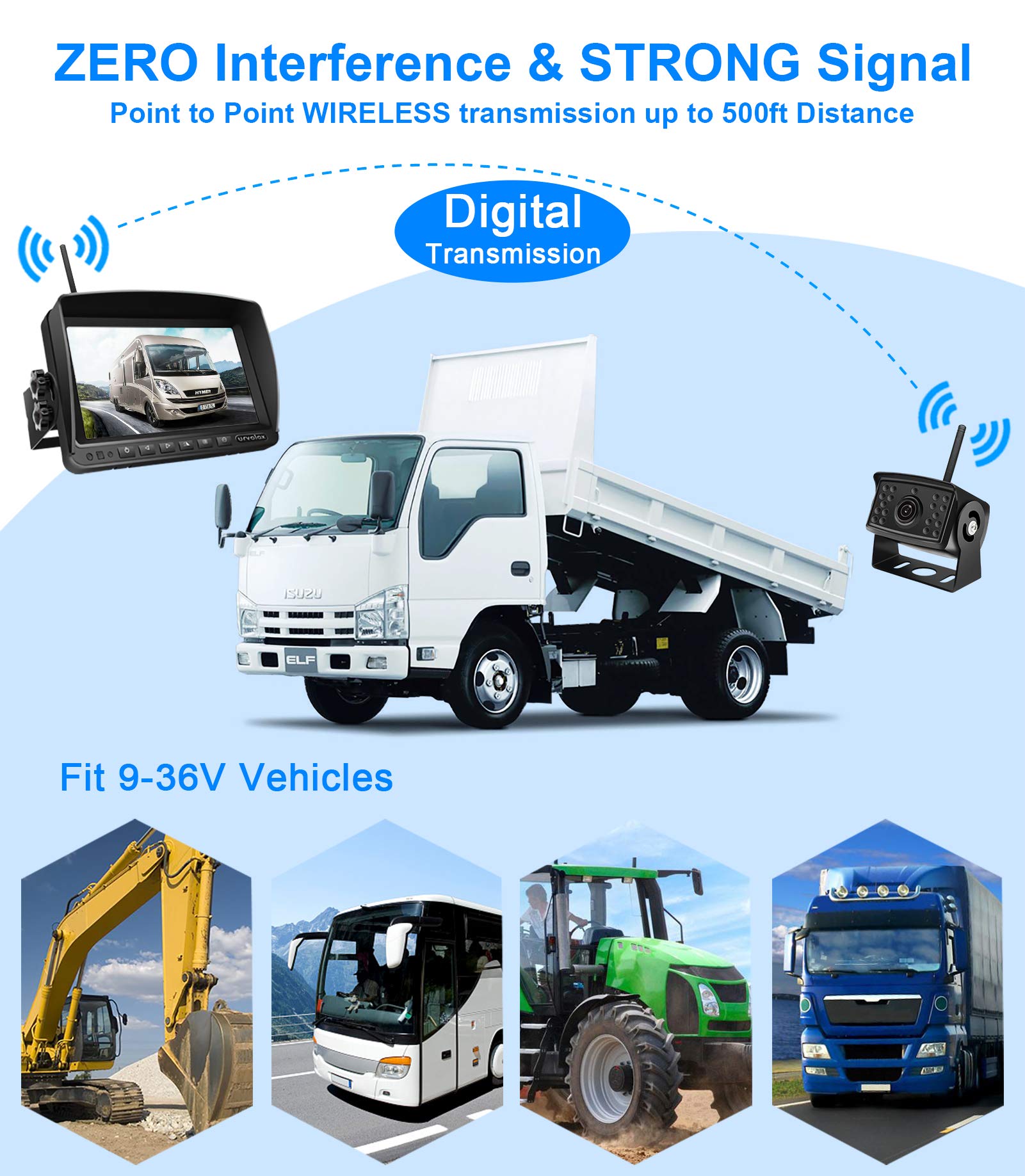 - Stabile, digitale Funkübertragung: Nutzt eine störungsfreie Punkt-zu-Punkt-Verbindung mit einer Reichweite von bis zu 137 Metern (450 Fuss) im freien Feld, ideal für Fahrzeuge bis zu 18 Metern Länge.