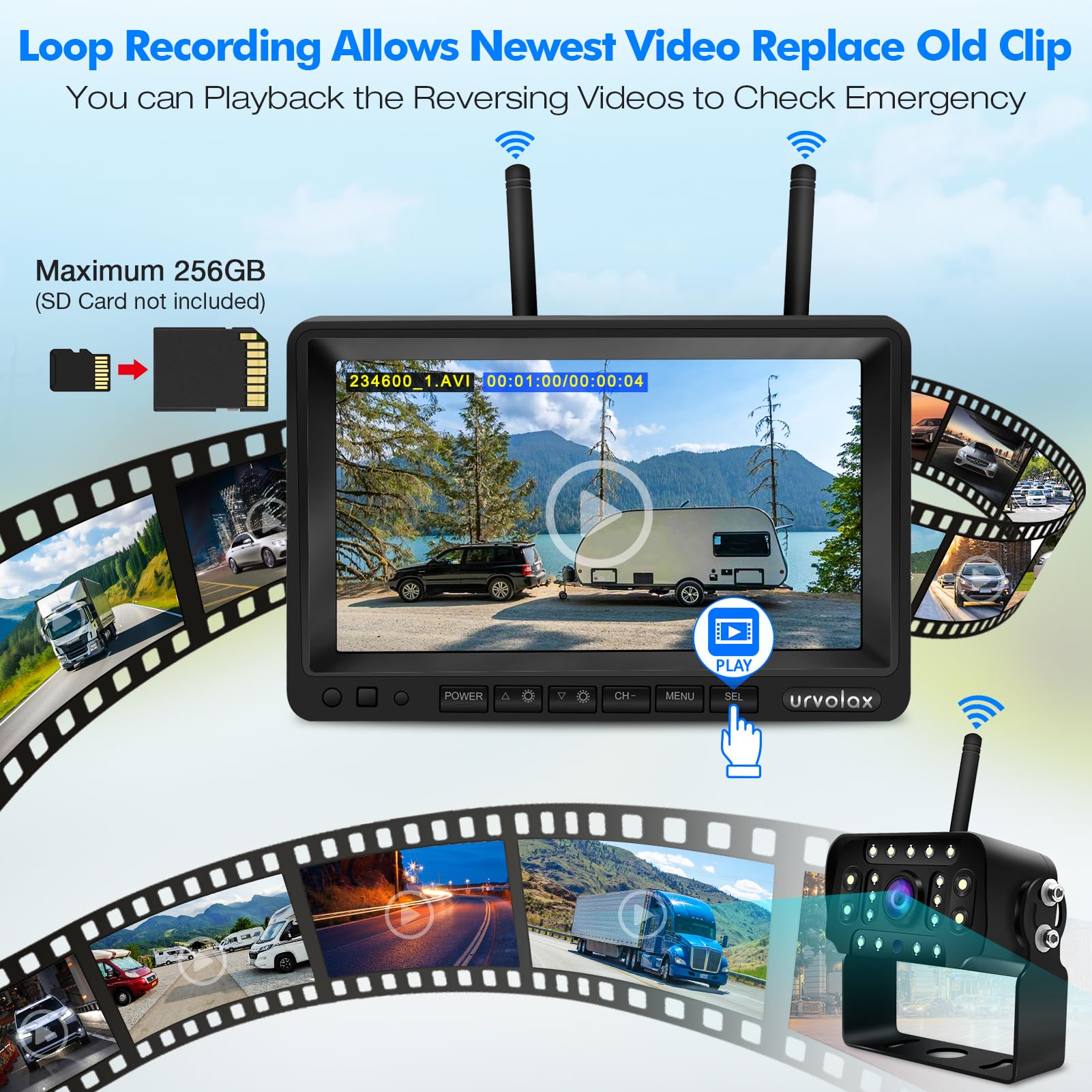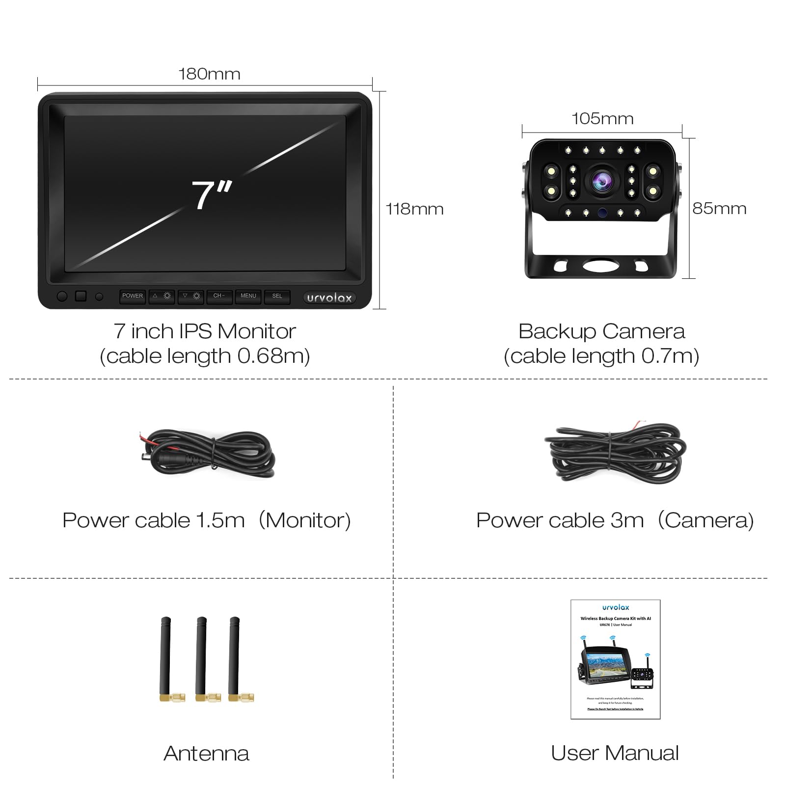 URVOLAX Rückfahrkamera System Kabellos - 7 Zoll FHD, KI