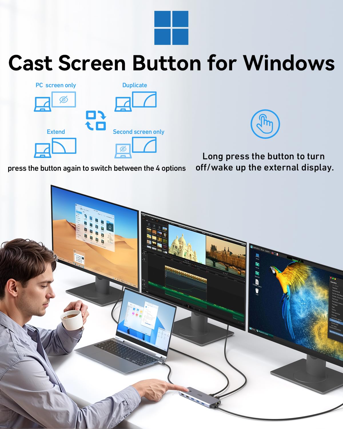 USB C Dockingstation 13-in-1 – Triple Display 4K Dual HDMI