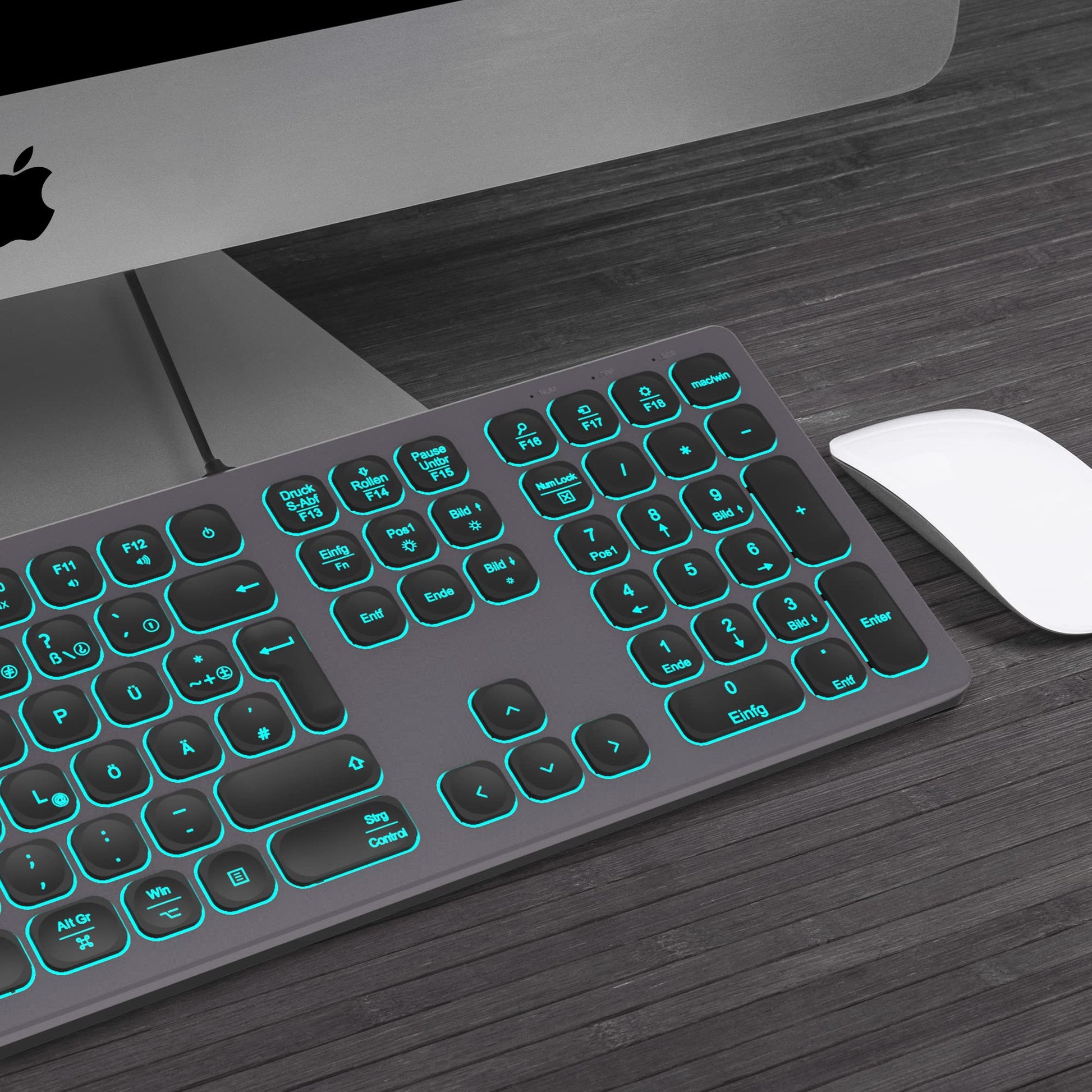 Atmosphärische Beleuchtung: Die Tastatur ist ein zentrales Element Ihres Arbeitsplatzes. Mit der glänzenden, in sieben Farben einstellbaren LED-Hintergrundbeleuchtung setzen Sie einen stilvollen Akzent und sorgen dafür, dass Ihre Tastatur auch bei schlechten Lichtverhältnissen gut sichtbar ist.