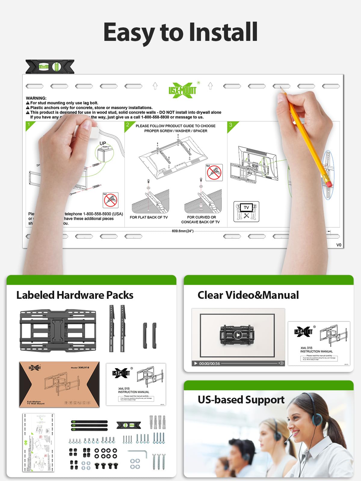 USX-MOUNT TV Wandhalterung Schwenkbar Neigbar - 32-90 Zoll