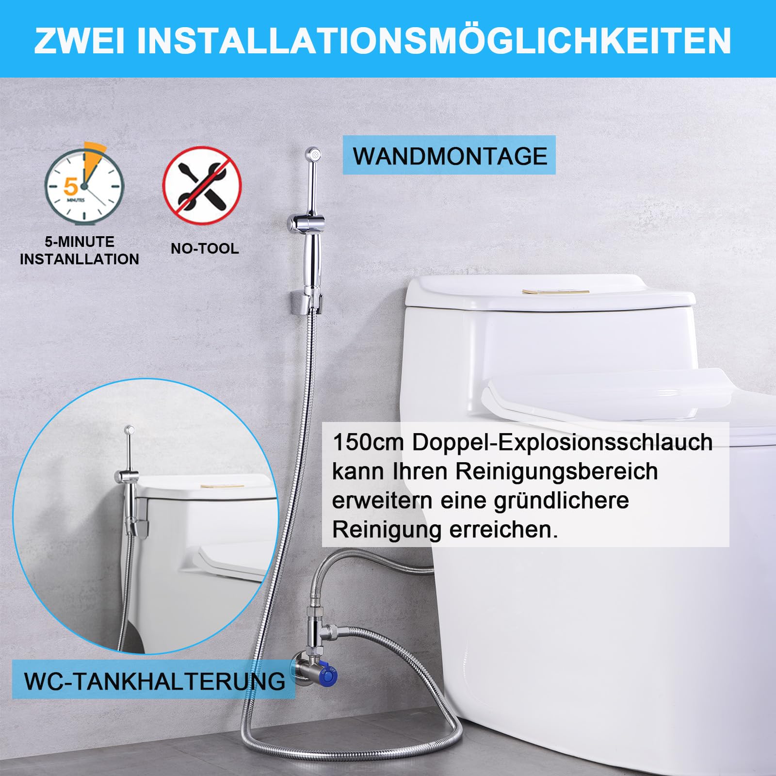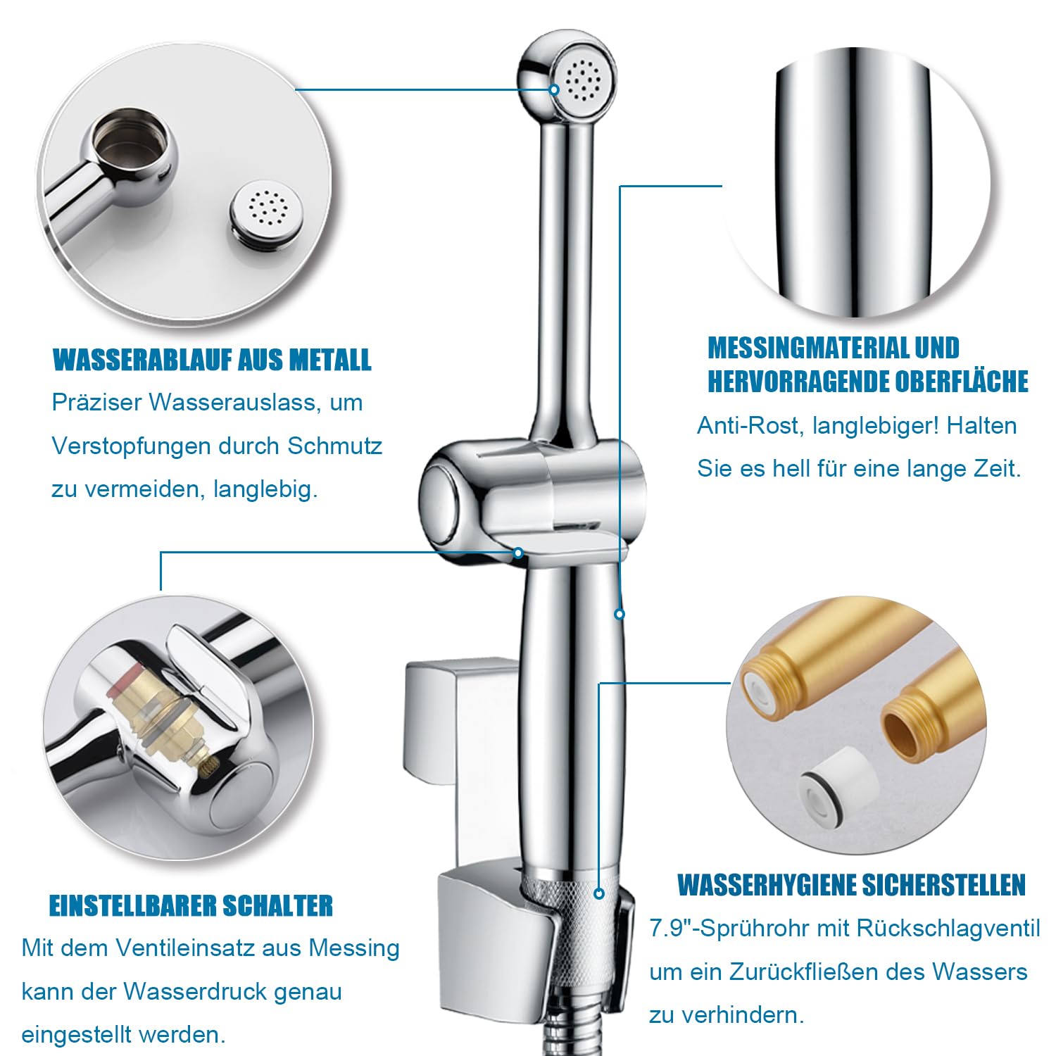 Diese Bidet-Handbrause ist eine vielseitige und langlebige Ergänzung für jedes moderne Badezimmer, die Hygiene und Nachhaltigkeit perfekt vereint.