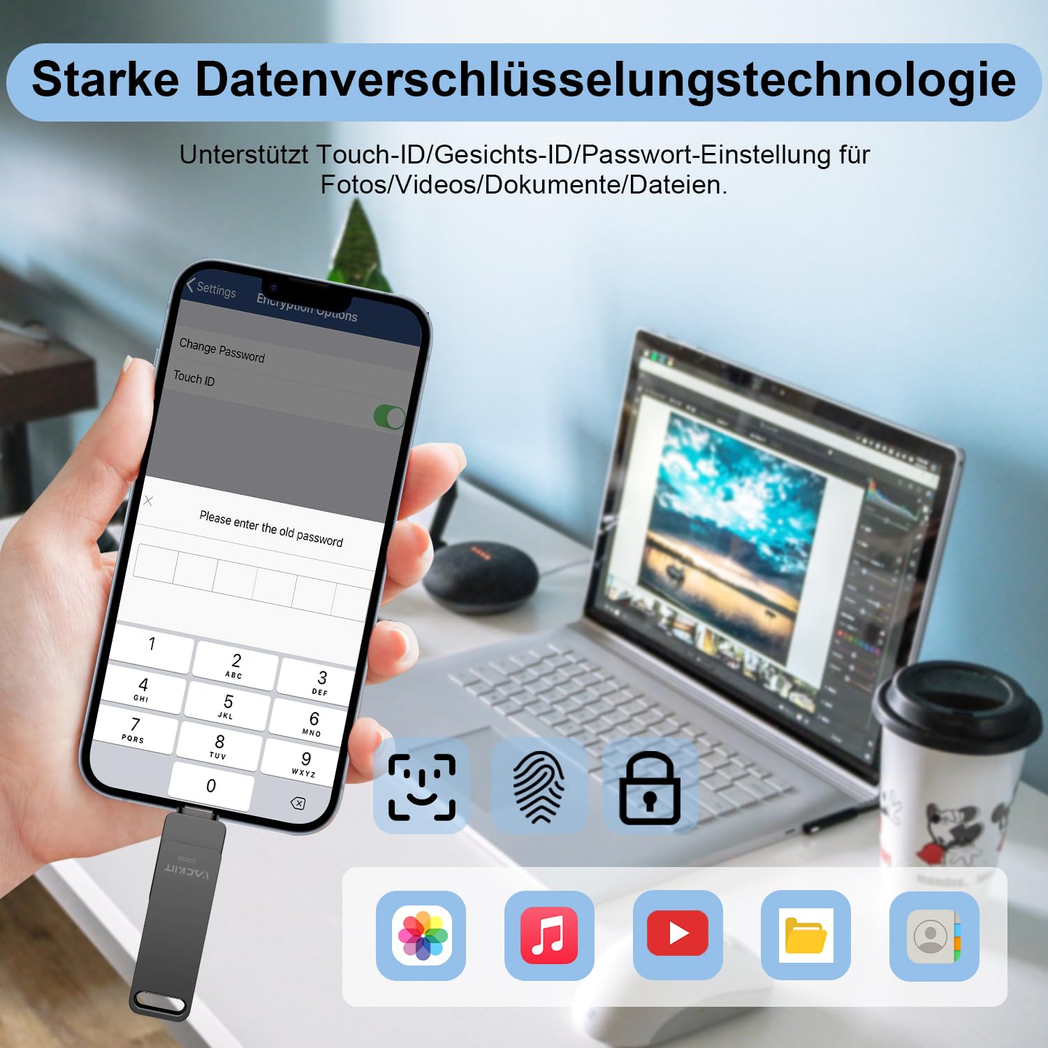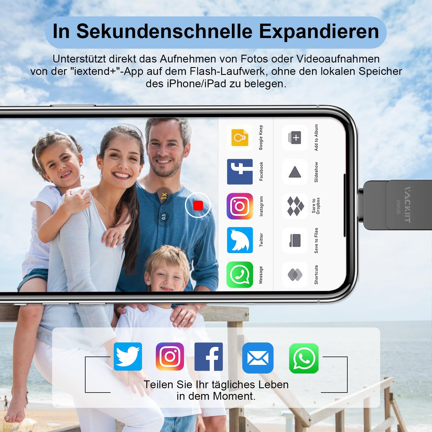 Vackiit USB Speicherstick 256GB – Apple Zertifiziert Lightning USB-C
