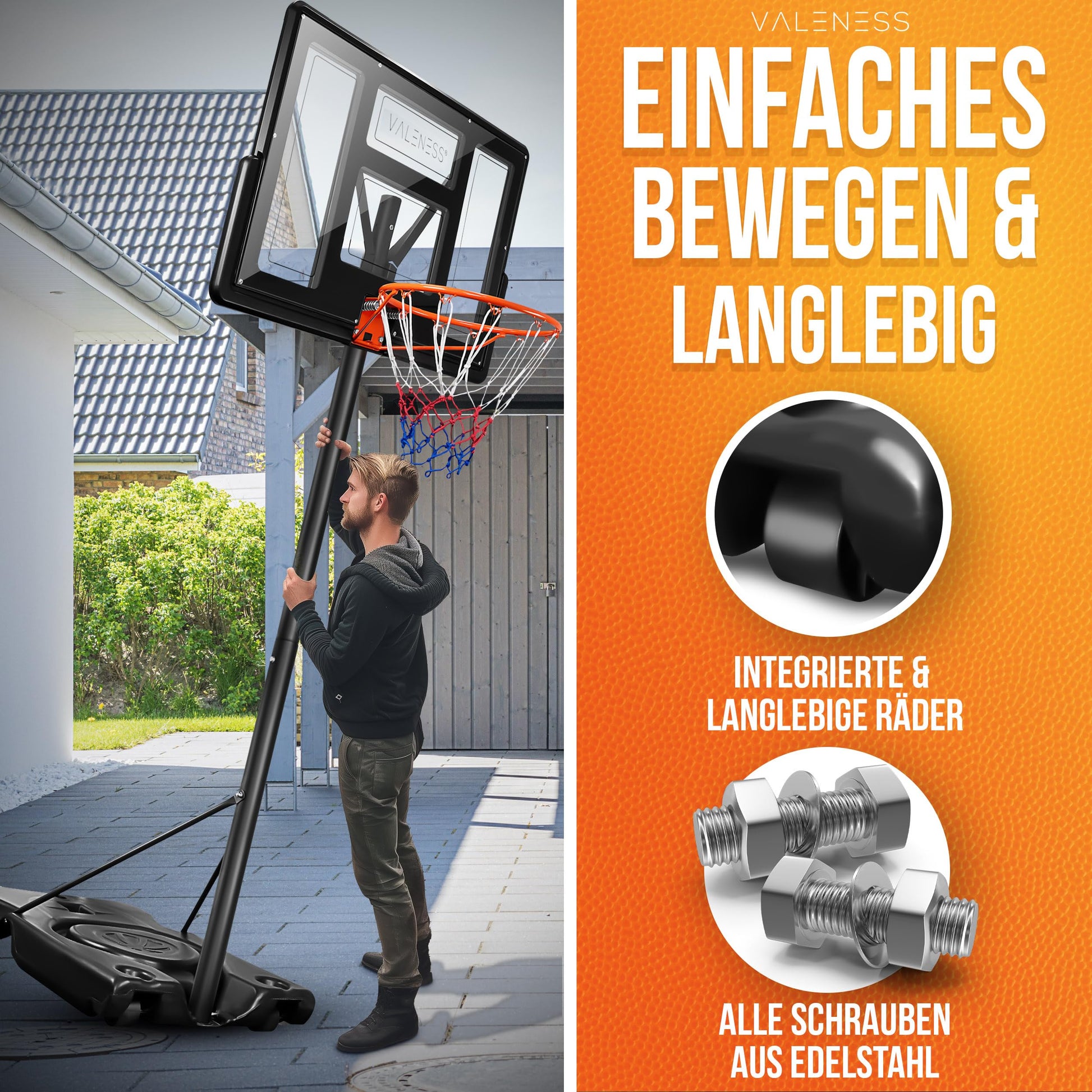 - Komplett-Set: Inklusive Outdoor-Basketball (Grösse 7), passender Pumpe und Anleitung.