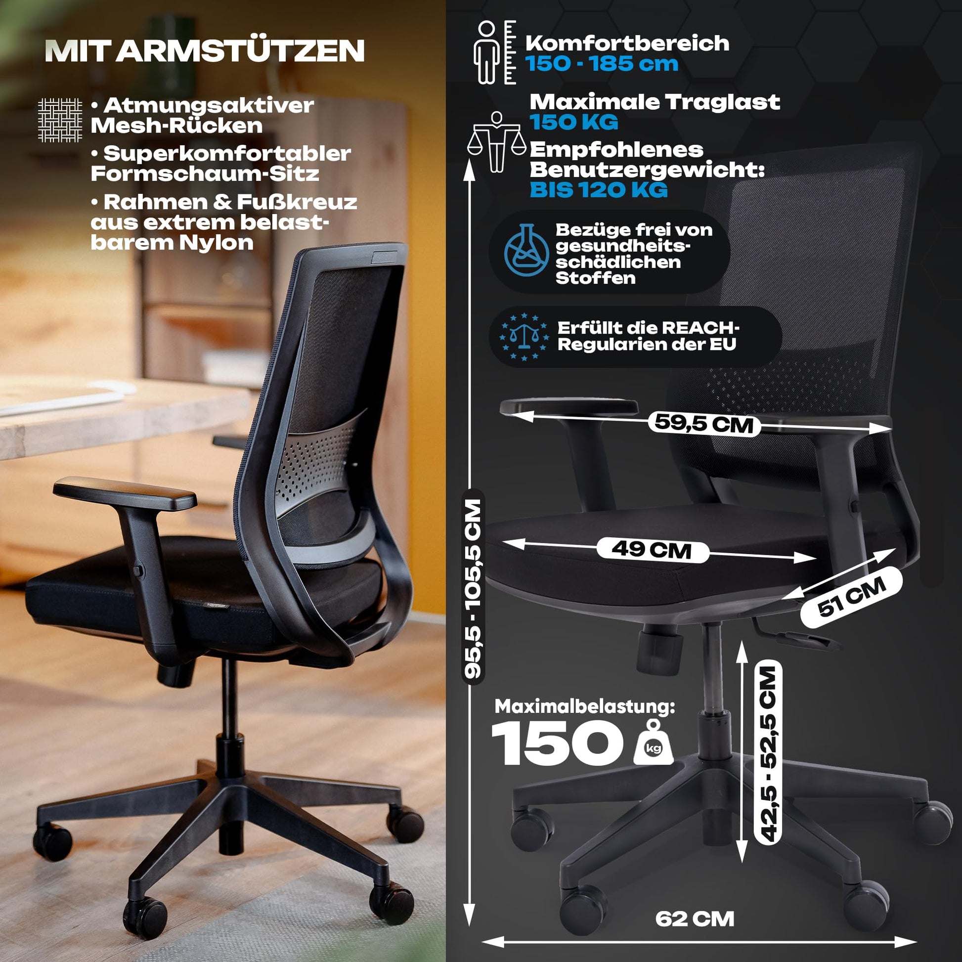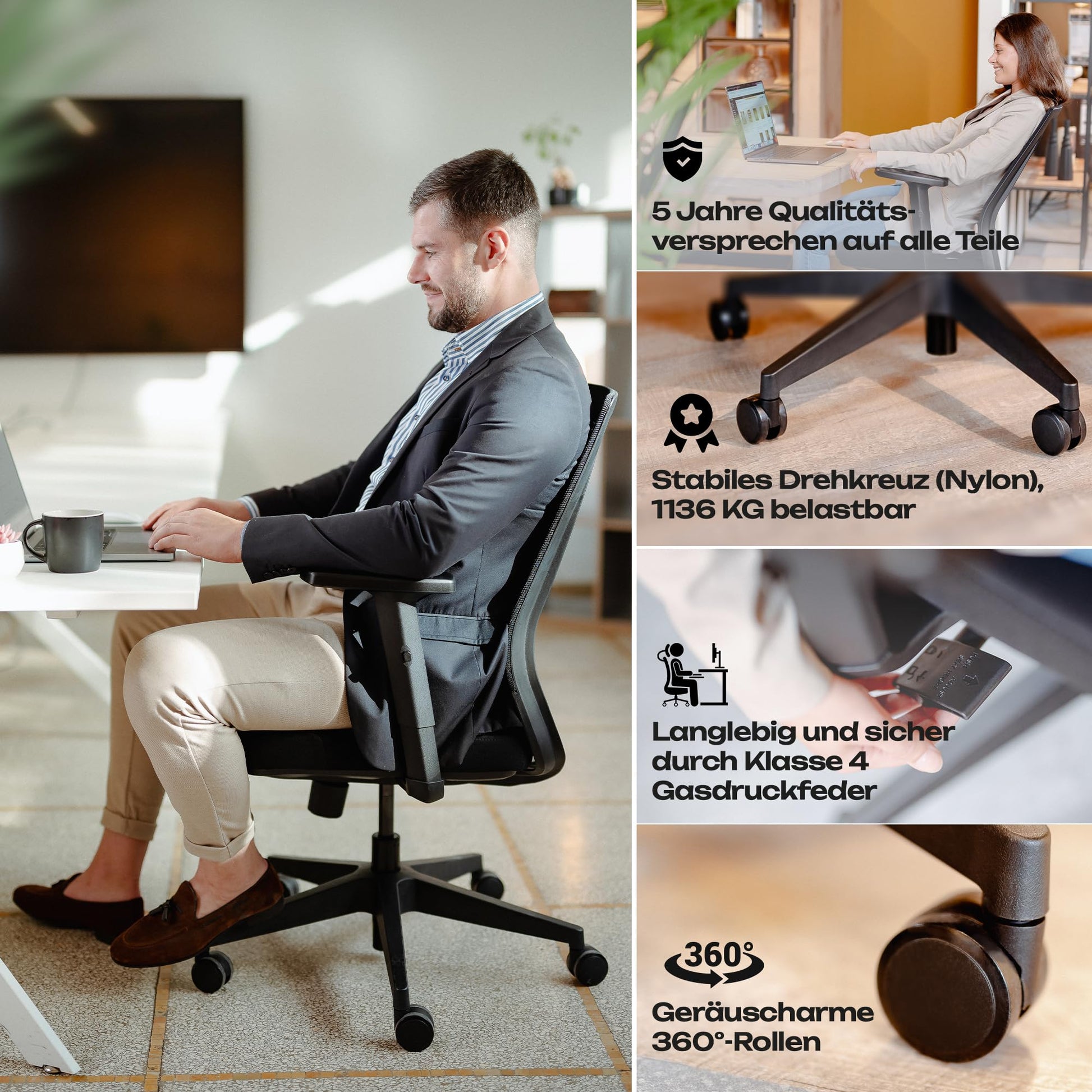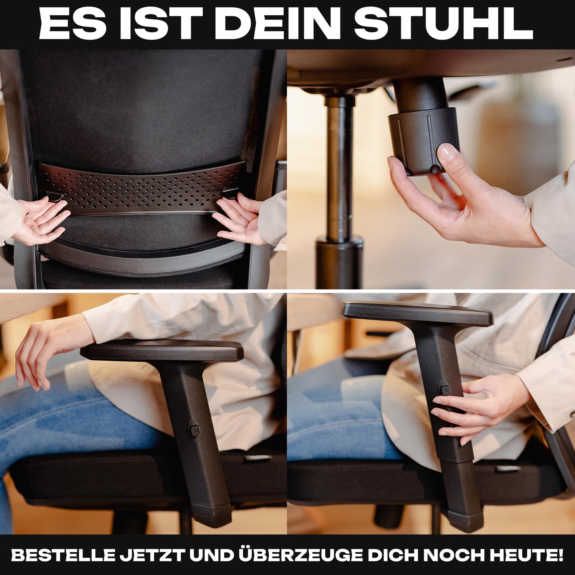 - Individuelle Anpassung: Einstellbare Armlehnen und atmungsaktive Mesh-Bezüge sorgen für eine optimale Passform an Ihren Körper.