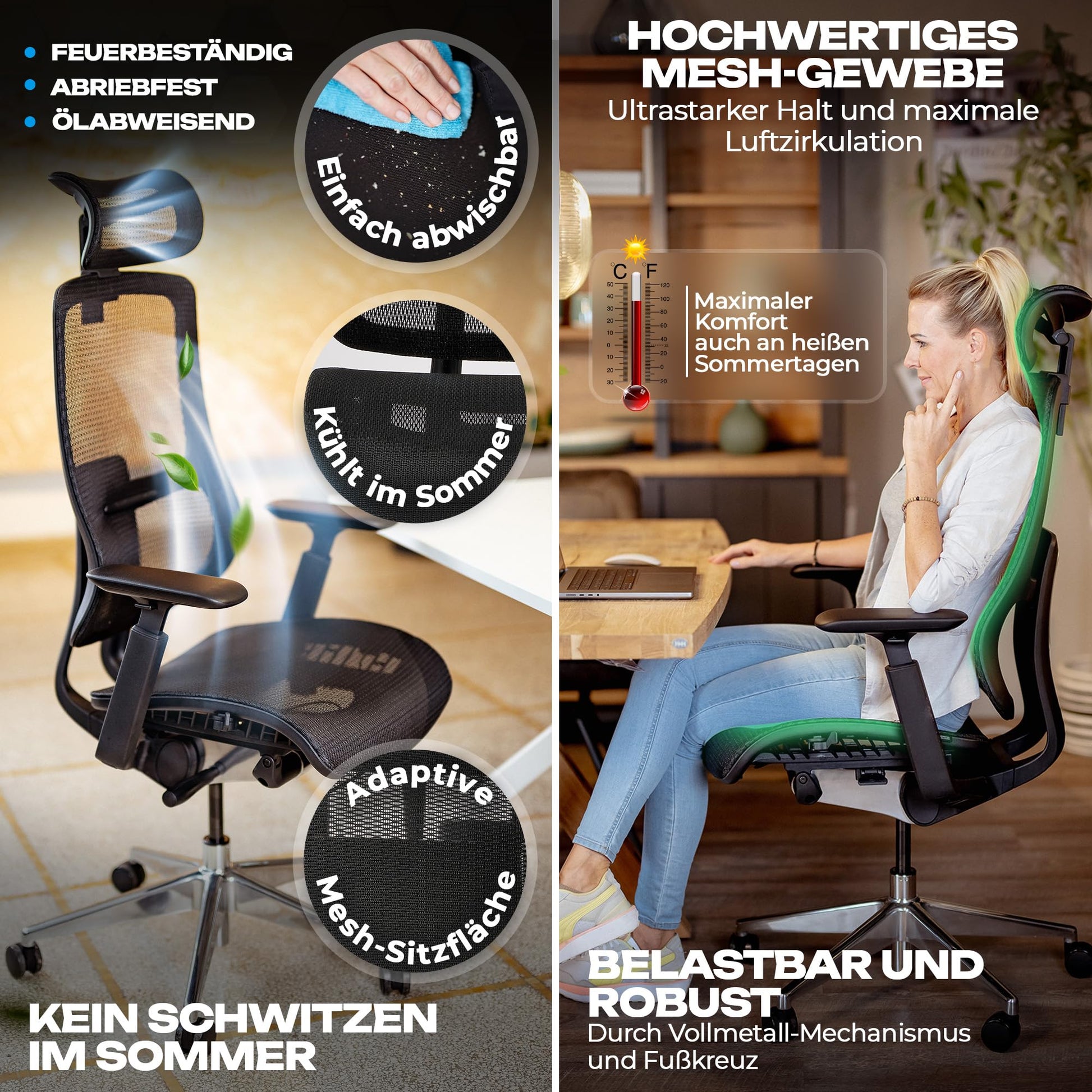 - Atmungsaktiver Mesh-Sitz: Sorgt für eine angenehme Luftzirkulation und verhindert Hitzestau, besonders im Sommer.