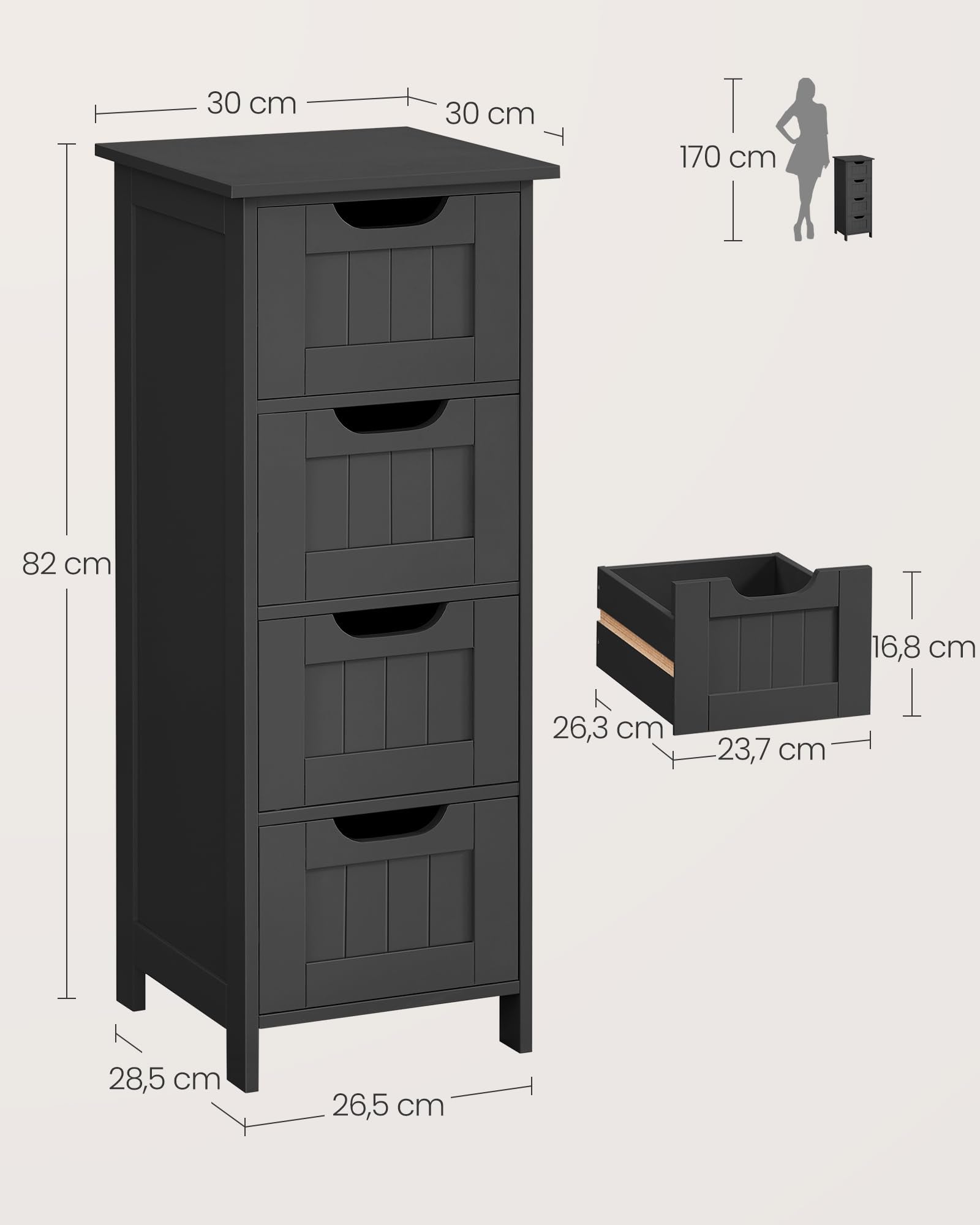 VASAGLE Badezimmerschrank 4 Schubladen – Tintenschwarz LHC040B01