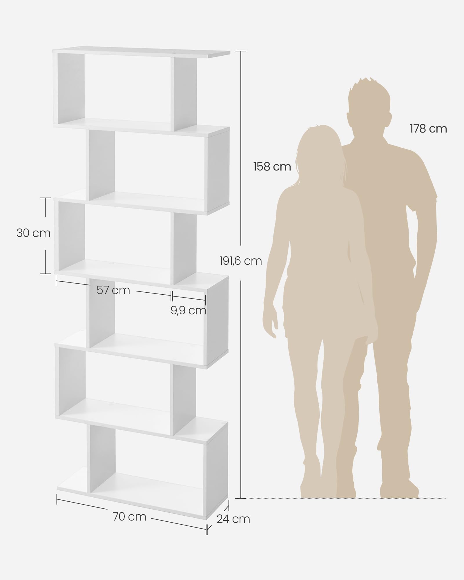 VASAGLE Bücherregal LBC61WT – Standregal Weiss 6 Ebenen
